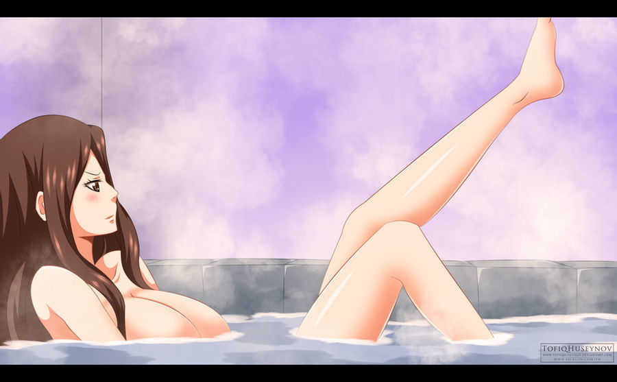 Заметно расслабившись, Кана откинулась спиной на каменный бортик и довольно вальяжно расправила руки из-за чего ранее обмотанное полотенце, слегка сползло.