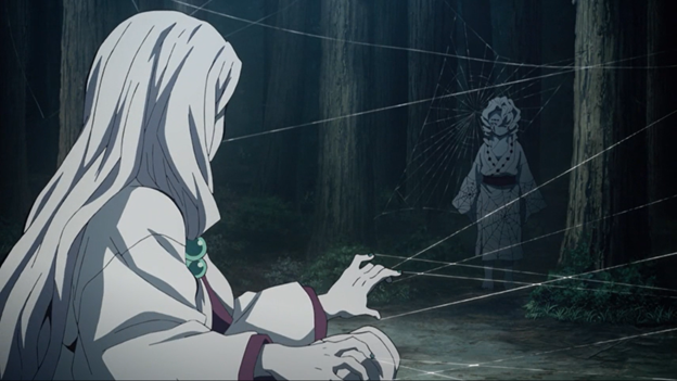 Белокожая молодая женщина, в абсолютно белой одежде, что сидела на камне в центре поляны и удерживала в своих руках многочисленные тонкие нити. Её голова была отвёрнута в противоположную от нас сторону, а потому я не видел её лица. Она смотрела прямо на такого же беловолосого паренька в белом кимоно, стоящего в тени деревьев.
