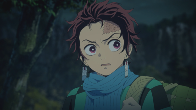 Тело Танджиро врезалось в дерево и остановилось. В тот же момент котомка за его спиной раскрылась.