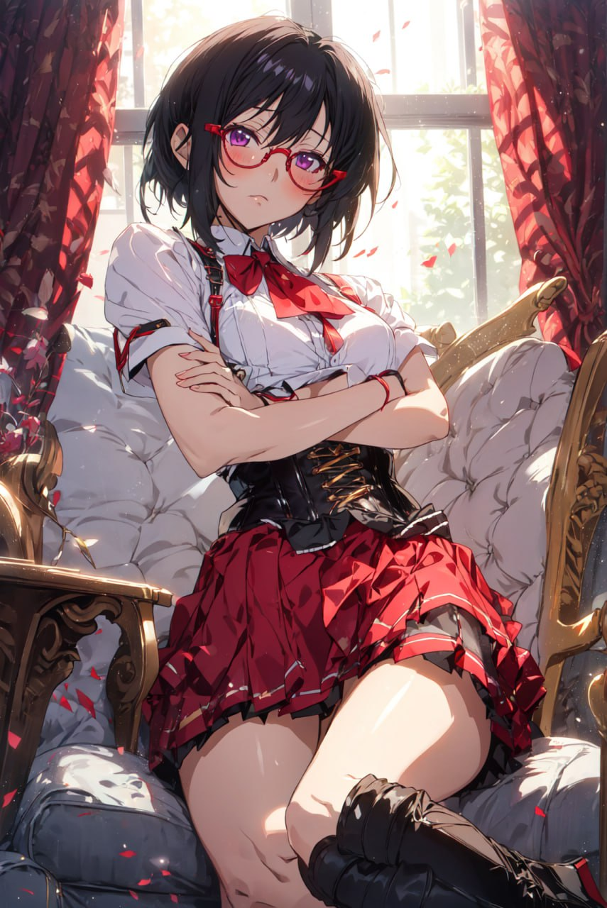 Тёмные короткие волосы, голубые глаза, проницательно взирающие на меня через линзы очков — это дань моды или у демонов реально проблема со зрением? — и чуть островатые черты лица. Рост небольшой, крупными размерами в области груди похвастаться не может, но школьная форма сидит как влитая, выгодно подчёркивая изгибы. Хм, по личному рейтингу поставлю на первую позицию.