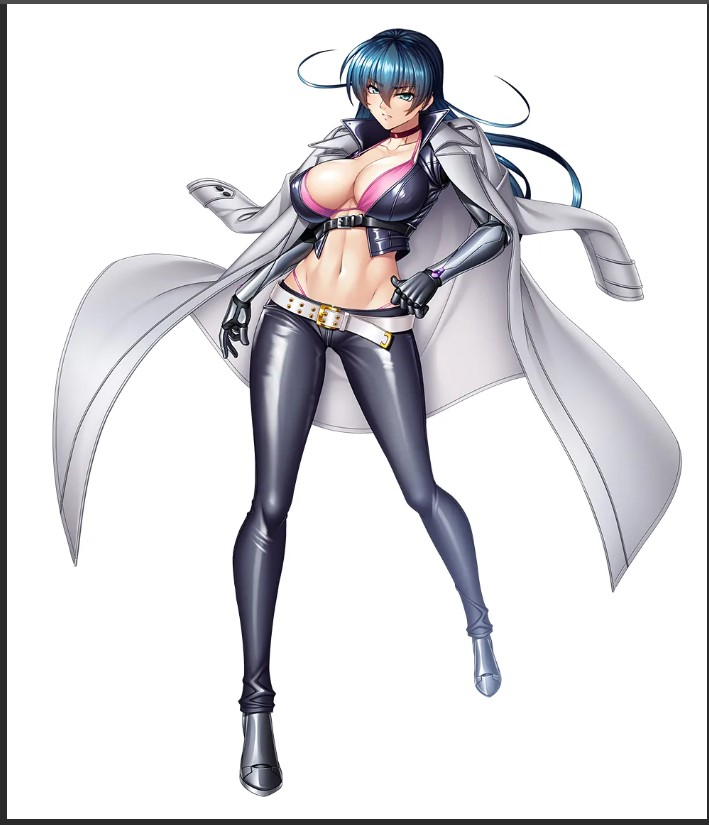 — Оу… — протянул я снова. теперь уже увидев ту. А кожаный наряд ей идет! Кхм, в смысле, кажись перед нами Асаги из будущего. Застегнутый только на надетый поверх ремень кожаный черный топ… к слову, крутая мысль для всех большегрудых тян — стягивать и закреплять одежду чем-то поверх, не требуя её застегнуться нормальным способом. Из-под него выглядывает плотный розовый лифчик. Черные кожаные джинсы с заниженной талией поддерживаемые толстым белым ремнем, с выглядывающими лямками розовых стрингов. И накинутое на плечи белое пальто. Довольно пафосное и крутое. О, и такая мелочь — механические руки. А ещё обувь отсутствует, из штанин торчат такие же механические ноги, от эмуляции пальцев на которых Асаги отказалась.