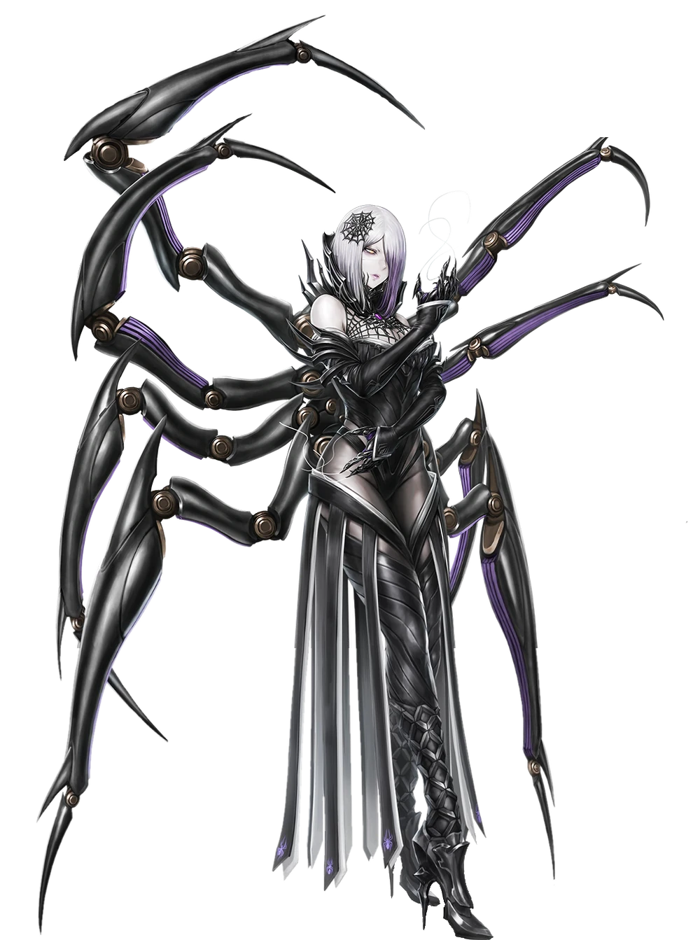 — Если что, то ты уже раз пятнадцать задела мою паутину, так что можешь не стараться и топать, как тебе захочется. Думала. если уж на меня выйдут, то это будут тайманины, а не онмёдзи, не удовлетворишь моё любопыство, чем я тебе так насолила, что ты взялась не за свой тип "врагов человечества"? — произнесла восседающая на паутине под потолком вниз головой седая девушка, за спиной которой застыли восемь паучьих лапок в демонической броне скорее напоминая причудливую механическую конструкцию.