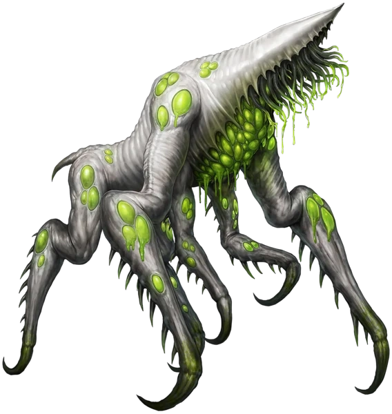 Кошусь на серо-зеленое, явно ядовитое нечто, похожее на гибрид насекомого и собаки, без нормальной головы, и конечностями как у саранчи или богомола, оканчивающихся изогнутыми когтями, пружиня на которых это существо и передвигалось.