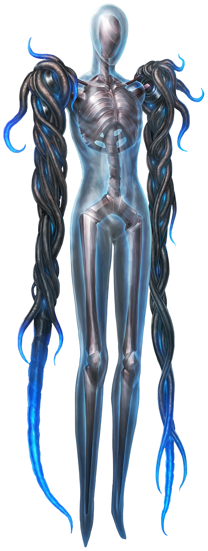 В последующих помещениях нам всё реже встречались бойцы Группы Джи. Зато уничтоженных роботов становилось всё больше, как подконтрольных Азусе, так и вот этих — новых. В какой-то момент мы стали замечать и что-то странное. Новый тип врагов среди побежденных — медузоподобные гуманоиды. То есть что-то человеческой формы, но словно созданное из прозрачного тела медузы, вместо рук — пучки черных щупалец, на концах светящихся синим, внутри тела скелет кого-то, несколько отличного от человека.