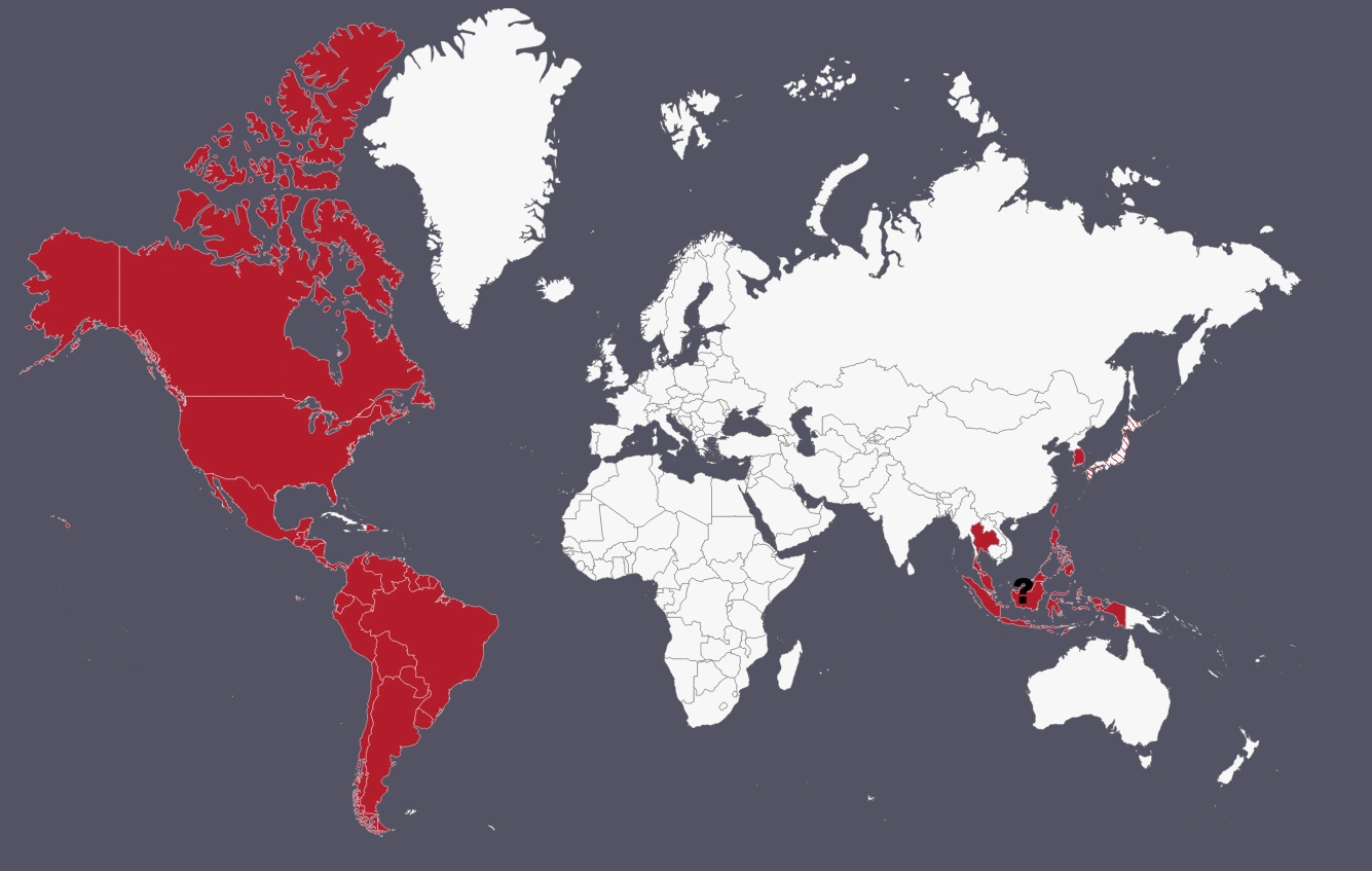 (Карта мира Тайманин, красным закрашена каноничная территория UFS).