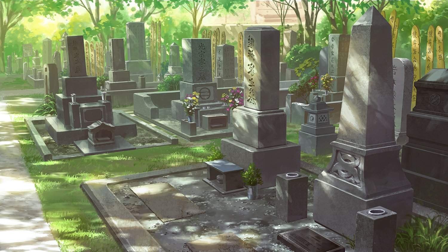 Неудивительно, что под гнётом таких дум, конечной точкой моего назначения оказалось кладбище. Весьма ухоженное, светлое, благоустроенное, оно совсем не походило на те мрачные ассоциации, что обычно выдаёт воображение. Ровные ряды могильных плит пестрили именами, памятниками и словами любви. Возле некоторых из них виднелись следы недавних посещений. Где-то лежали цветы, стояла чашка саке или крохотный окурок сигареты, что кто-то заботливо умостил на мемориал, даже в смерти потакая привычкам усопшего.