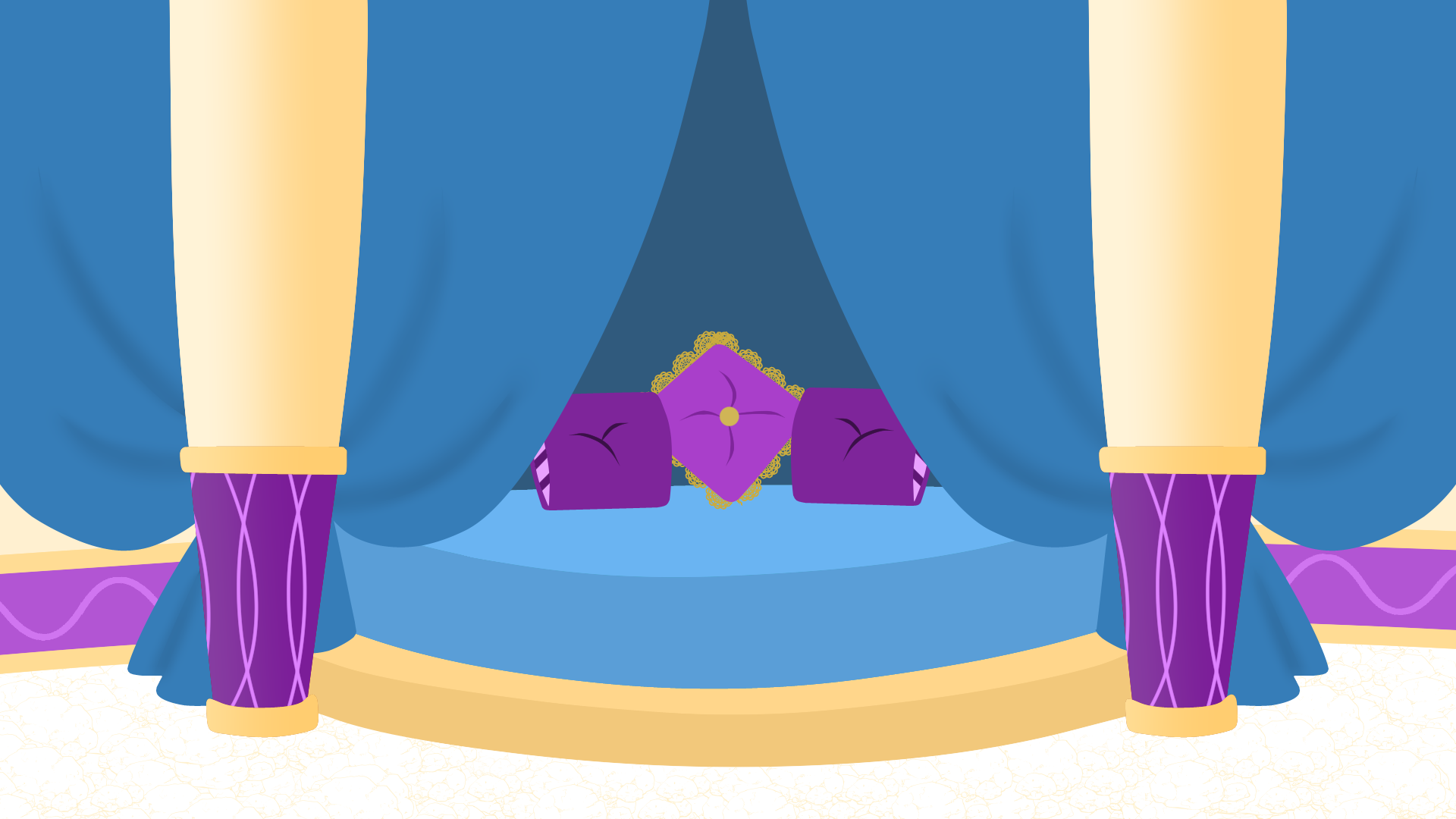В данный момент, самое близкое, с чем можно было сравнить её внешний вид, так это Жасмин из мультфильма Аладдин. На ней была синий полупрозрачный, практически шелковый топ, и небольшая прозрачная ткань, выступающая в качестве своеобразного платья, или юбки, но закрывающая лишь заднюю часть кобылки, оставляя перед и животик открытым.