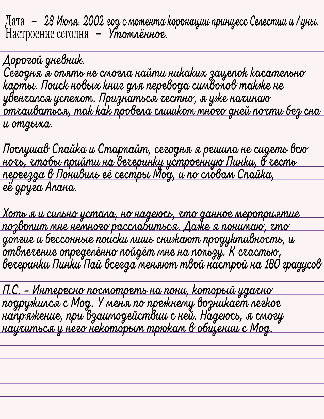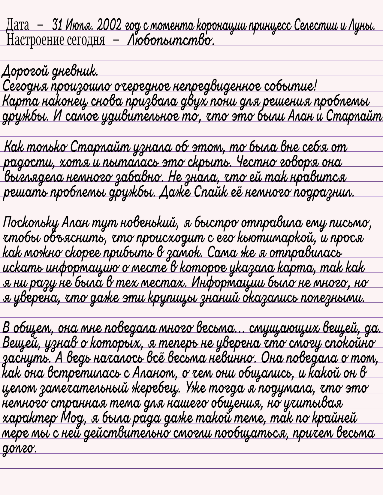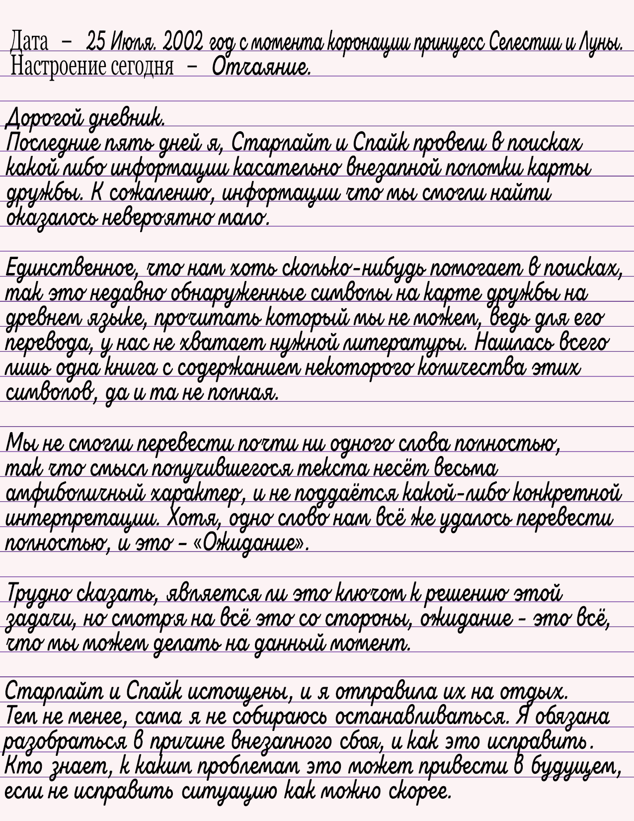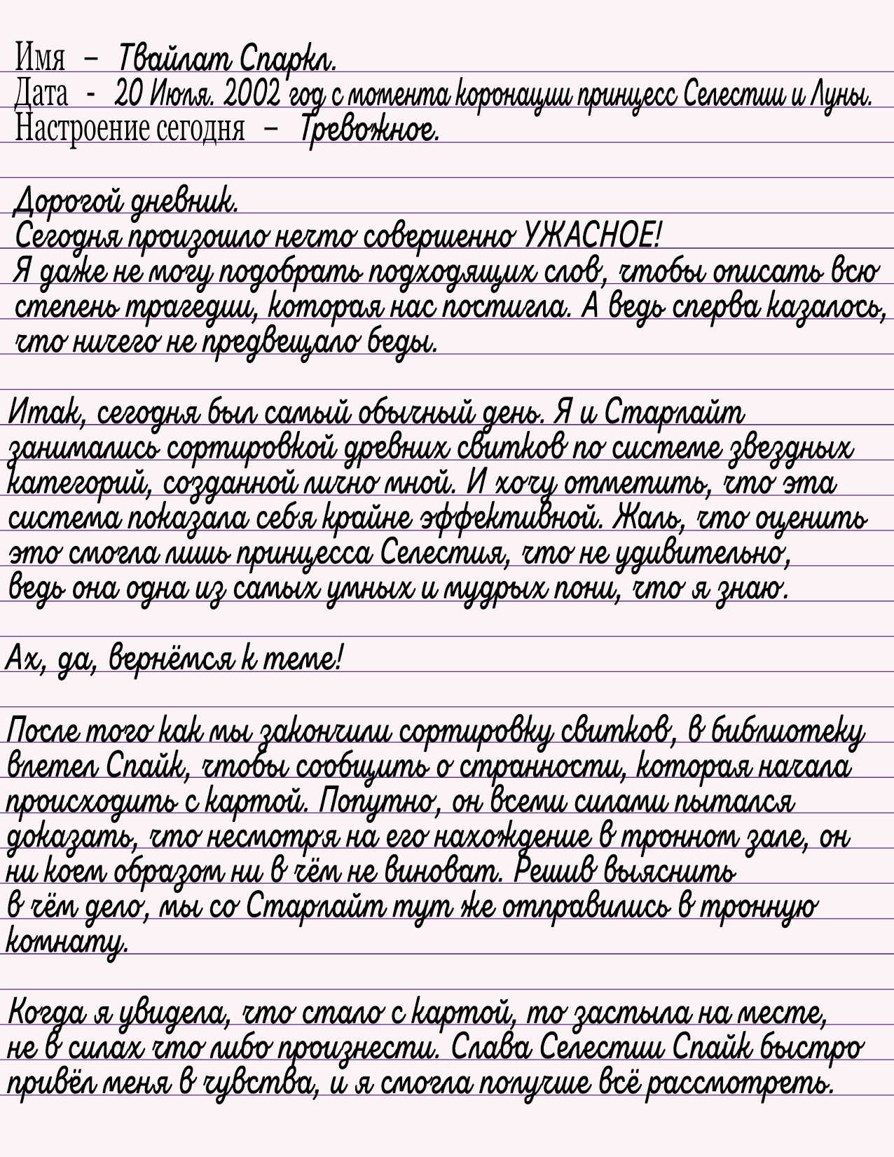 Вот и новая глава, надеюсь она вам понравится, так как я планировал её уже очень давно, но так как я не был точно уверен во всех деталях истории, я затягивал её выпуск долгое время, и теперь, поймав подходящий момент, я наконец смог её полностью закончить, и представить вашему вниманию. Я специально сделал её в подобном стиле, так как хотел передать некоторый антураж дневника. Словно она действительно написала его. Пишите, как вам. И да, если вам такой формат не нравится, то дальше я буду просто выпускать текстовые варианты. Жду ваших комментариев .^^
