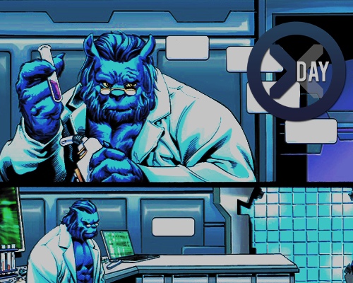 — Как дела, Хэнк? — лысый пожилой человек в инвалидном кресле тихо подъехал с двухметровому громиле с синей шкурой и звериными чертами лица, на котором особо нелепо смотрелся лабораторный халат и очки. Инвалида сопровождали двое подростков — парень, носящий очки с темно-красными линзами, а также невысокая русоволосая девушка, что не знала куда деть руки.