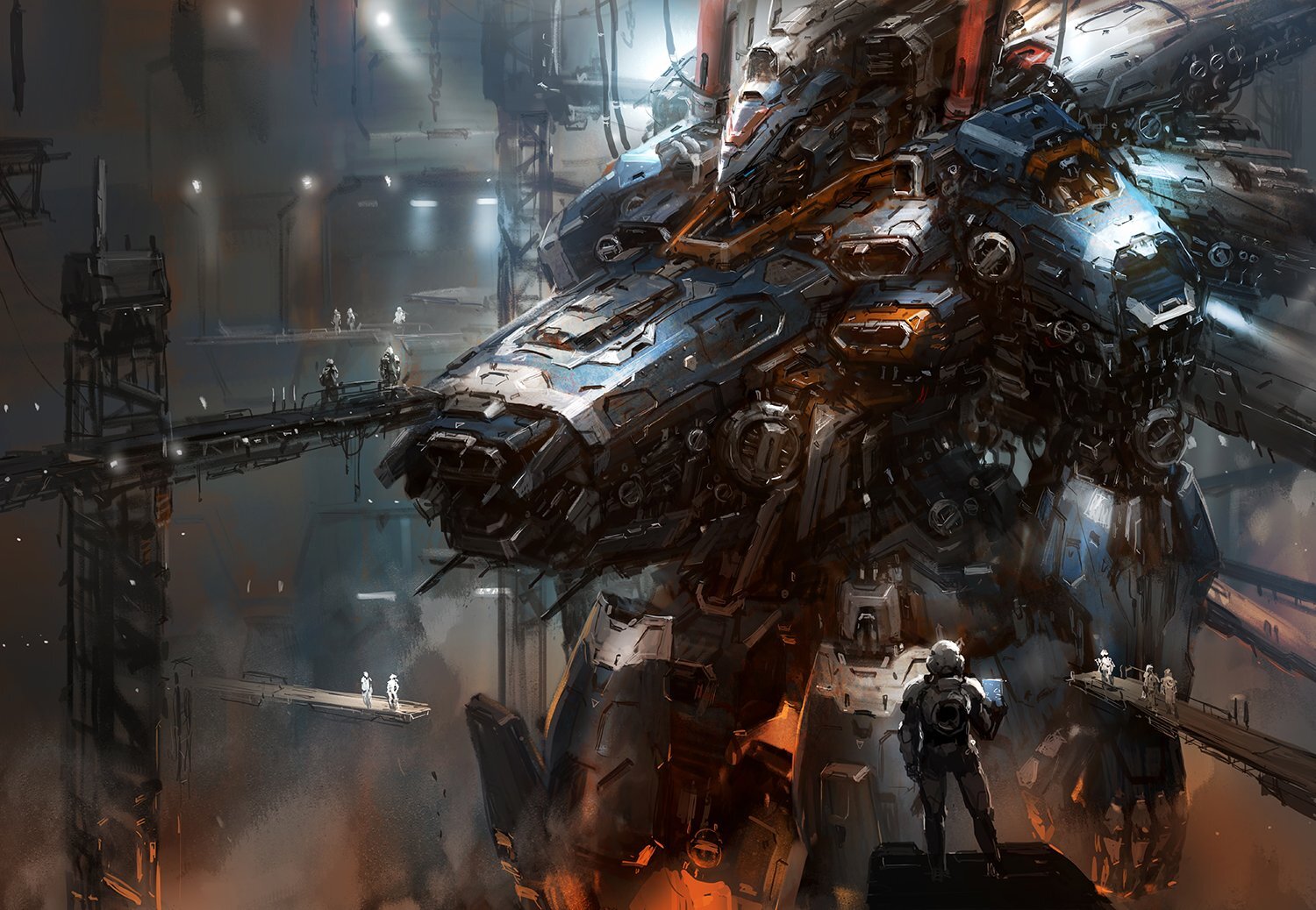Именно тогда военные гении страны вернулись к старым проектам, давно пылящимся в архивах ВПК. Одним их них и были сверхтяжелые боевые роботы. В первоначальном своём варианте предполагалось, что экипаж находился внутри этих машин либо они управлялись армейским ИИ. Айзек и его подчиненные предпочли пойти другим путем, разработав комплекс систем связи, благодаря которым управление боевыми роботами осуществлялось с корабля-носителя.