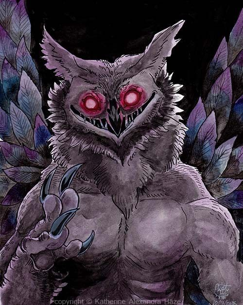 Круглая серая голова раздалась вширь. Из-за клюва показалась ротовая полость, полная бритвенно-острых клыков. Птичья грудная клетка также растянулась, обращаясь человечьей. Появились четырехпалые руки, снабженные когтями, а за спиной мутанта распахнулись громадные крылья.