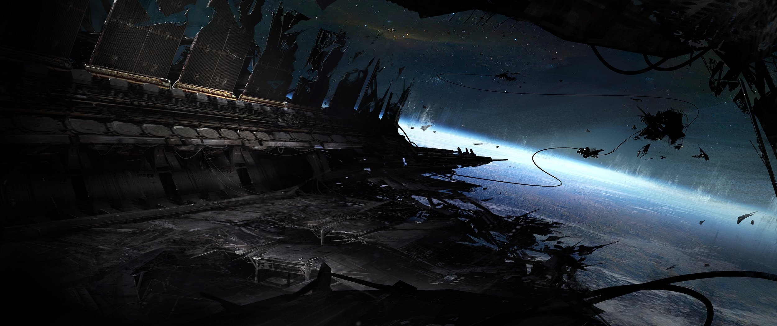 Кровавый кошмар ещё больше становился похож на бред маньяка из-за того, что помещение оказалось буквально разгромлено недавним столкновением с обломками фрегата. Коробы воздуховодов обрушились на пол, а он, равно как и стены с потолком, были искорежены деформацией несущих конструкций.