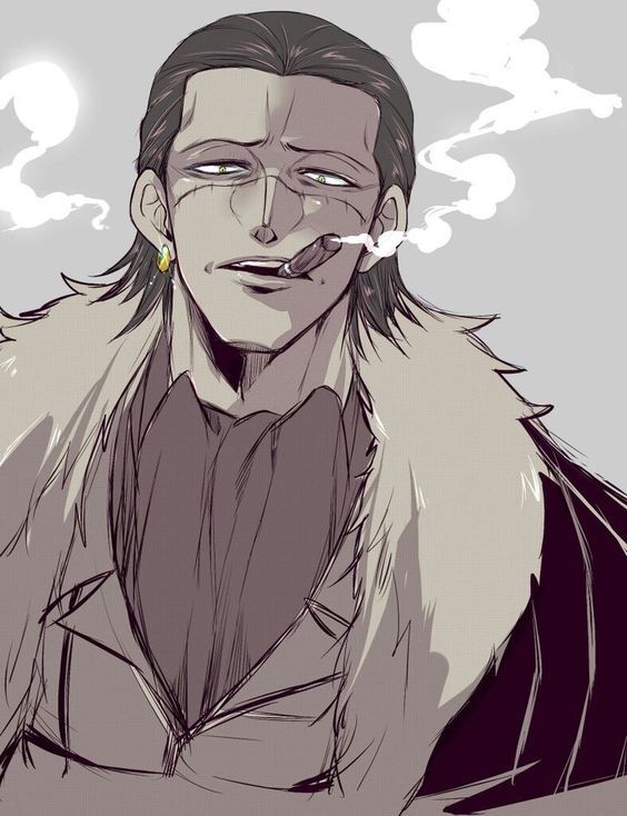 Крокодайл полностью соответствовал своему фото на розыскной листовке. Высокий, широкоплечий, мужчина лет двадцати пяти. У него была бледная кожа, и чёрные волосы с ярким фиолетовым отливом, аккуратно зачесанные назад. Через лицо, от уха до уха, прямо над носом, тянулся грубо сшитый шрам. Из-за которого, и так глубоко посаженные поникшие глаза, казались ещё меньше. Одет пират был в деловой, явно сделанный на заказ, костюм, поверх которого на плечи была накинута тяжёлая шуба с меховым воротником. И это на тропическом острове. Видимо у логий какое-то своё отношение с температурой. Интересно.