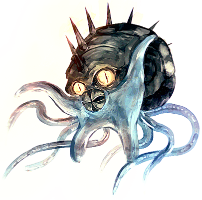 Должен признать, я не видел, чему тут умиляться. Виви, например, была очень милой черепашкой. Красивой. С гладкой, но прочной чешуей, с поблескивающим рыжим панцирем… Омастар же напоминал что-то среднее между осьминогом и вырванным из тела мозгом. Большая раковина была именно такой по форме — не совсем круглая, но и не овальная, а как бы… слегка спиральная. Как человеческий мозг. И покрыта она была рядом длинных шипов, что в будущем станут ядовитыми, как только покемон чуть-чуть подрастет. Под ней торчали огромные глаза и отталкивающая зубастая пасть, «украшенная» подвижными синими щупальцами. Мокрыми и склизкими. Но Мисти всё нравилось…