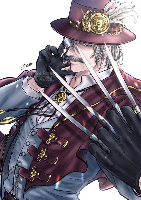 Это оказался довольно высокий мужчина, с седыми, словно укрытыми пепелом, волосами, доходившими ему почти до плеч, и такого же цвета аккуратными усами. Один из его глаз лучился небесной лазурью, в то время как второй багровел ярко-алым цветом. Он был весьма широк в плечах, но не отличался статью. Хотя добротный, явно сделанный на заказ, камзол, несколько устаревшего кроя, весьма выгодно скрывал недостатки угловатой фигуры. Дополнял же картину источающий пар чайник, что незнакомец сжимал в одной руке, и охотничий нож в другой.