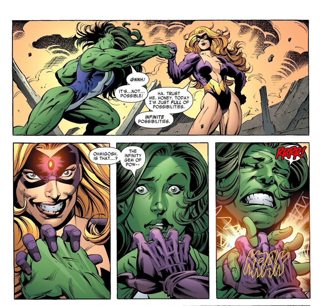 (а ещё над ней поиздевалась киновселенная, справа она из комиксов поздних редакций, и слева… сыгравшая её актриса в сериале Женщина-Халк… за что? Мои глаза почти пробудили шаринган)