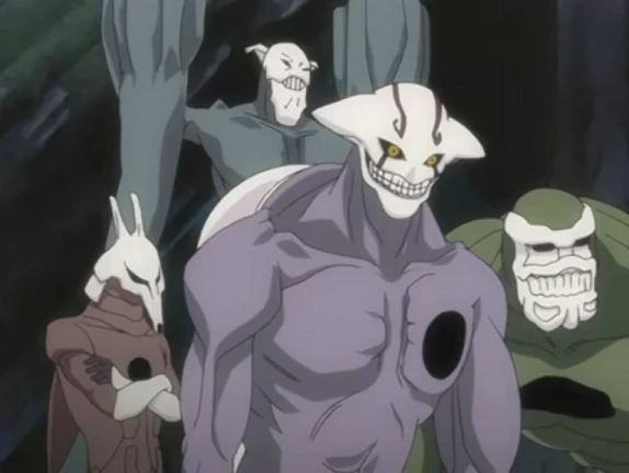 Эти ребята были даже меньше большинства низших, — ростом от двух с половиной до трёх метров, — но не стоит обманываться относительно безобидным внешним видом. Ведь именно они были источником той сильной реацу, которой подчинялись все остальные пустые, как низшие, так и гиганты гиллианы. Адьюкасы — вторая стадия эволюции меносов.