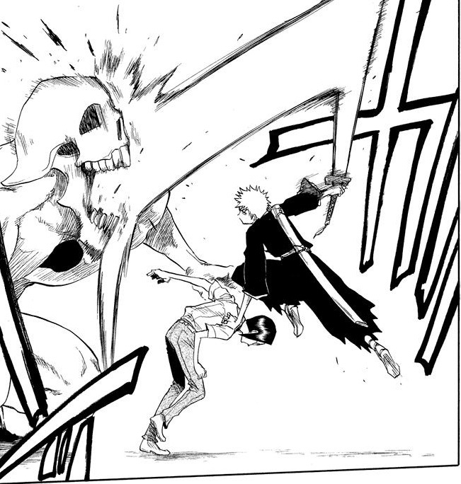Я бы с удовольствием продолжил нашу маленькую перепалку и поспорил о том, кто тут раздражающий (Иссида), а кто восхитительный и всегда успевает вовремя, чтобы спасти и морально поддержать, но пустые не намерены были давать нам такой возможности. Подняв вой до небес (вполне буквально), они навалились на наш с Рукией дуэт в решительном самоубийственном порыве. Штук двадцать за раз!