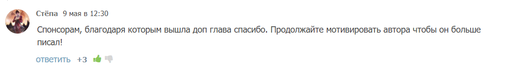 Ну и собственно заканчиваем лить воду и возвращаемся к теме поста. Сидел я и думы думал, задавался вопросом касательно бонусных глав. Донатят на эти цели немногие. Как и в целом подписывается малый процент, ведь ну просто не принято у нас платить за то, что и так можно получить бесплатно. Принято скорее срать на это бесплатное и качать права, возмущаться, что что-то не так.