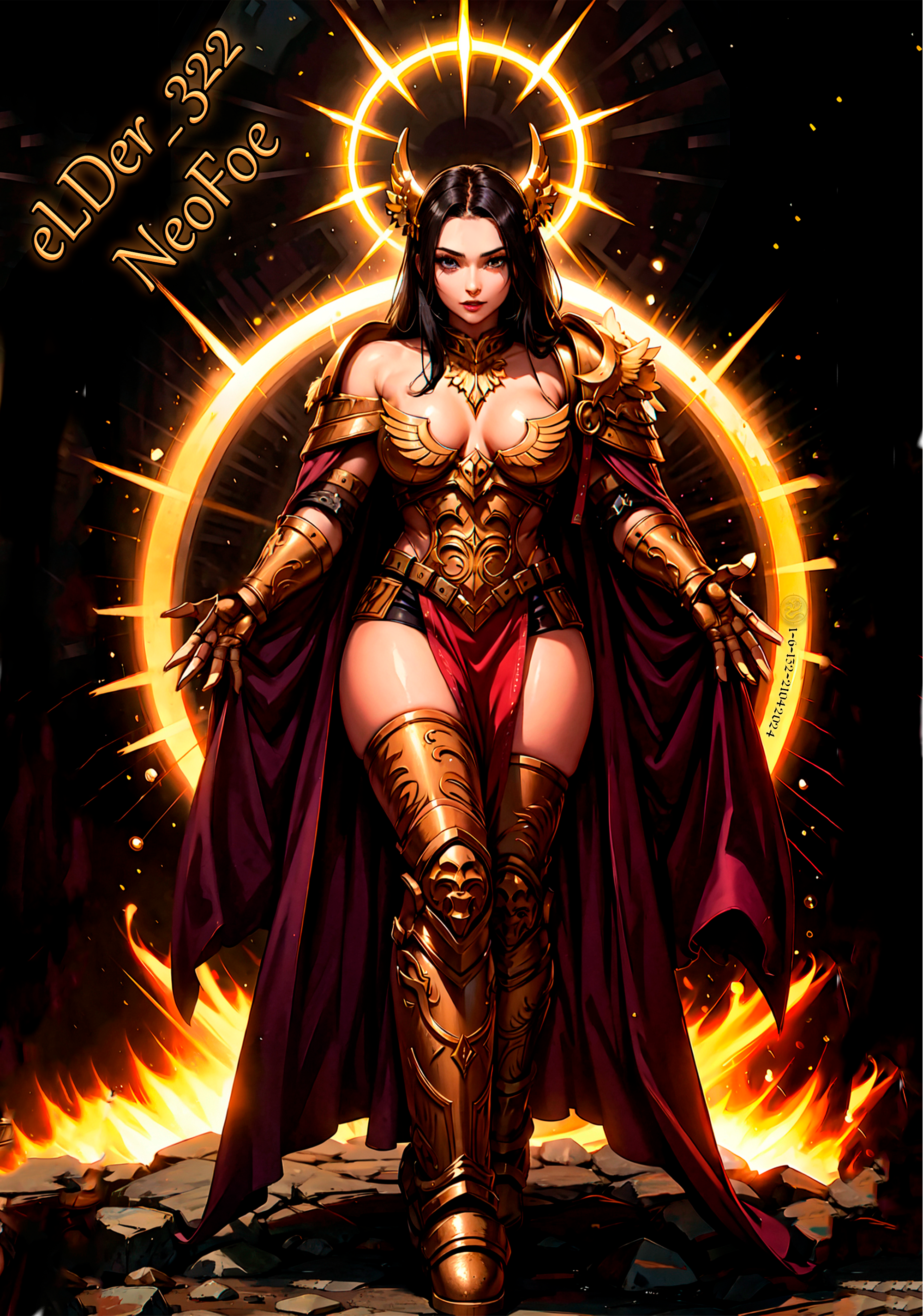 Поэтому в связи с этим инсайдом, решено было сделать каноничную Бог_нессу-Императр_оршу. Это кстати не арт в нейросети, а официальный арт из наработок Чёрной Библиотеки. Именно эта икона висит в кабинете Робаута Жиллимана, а также именно эта татуировка набита на спине Рогал Дорна.