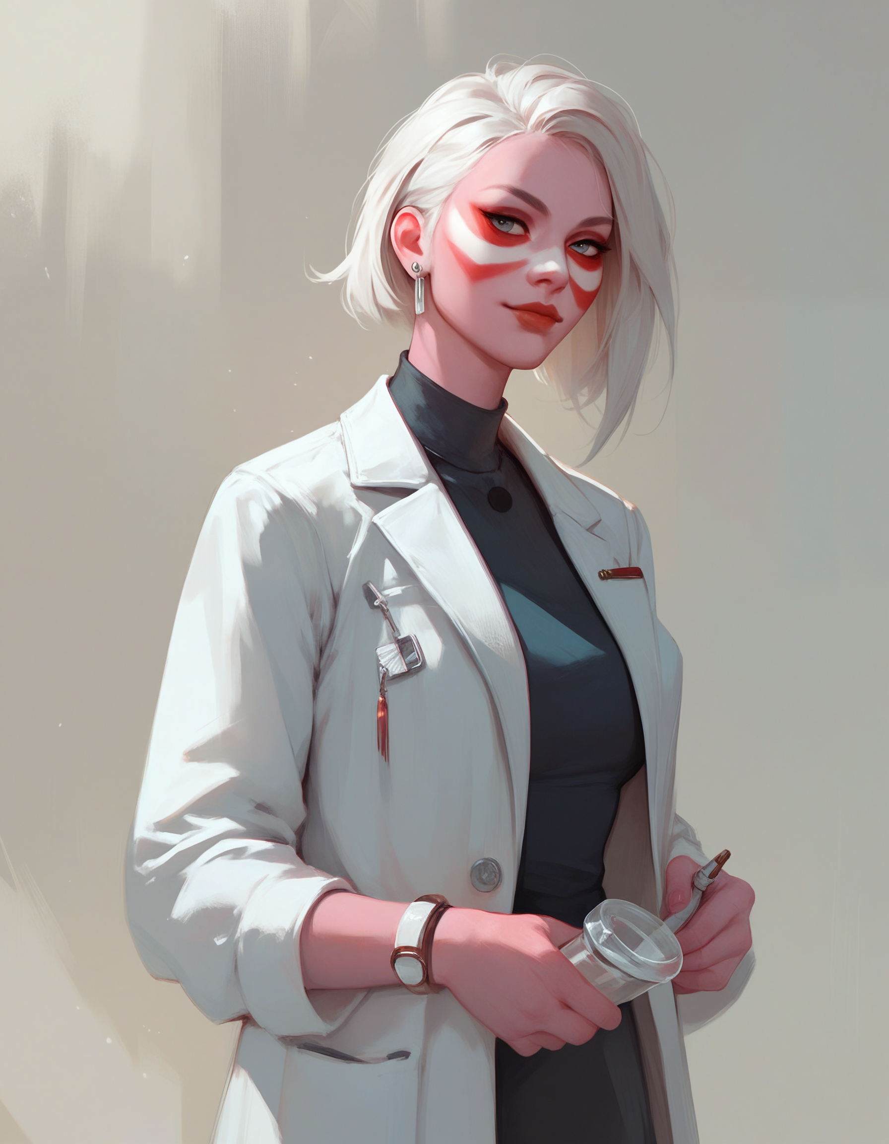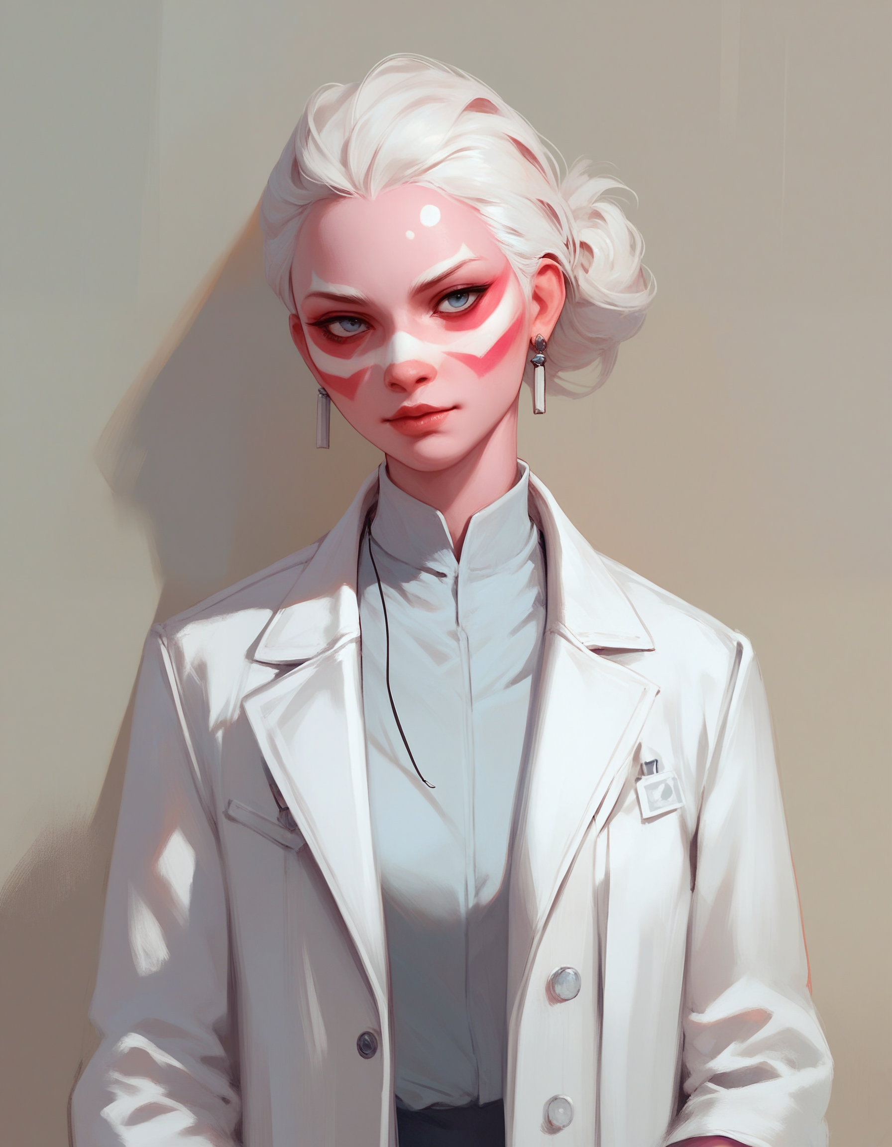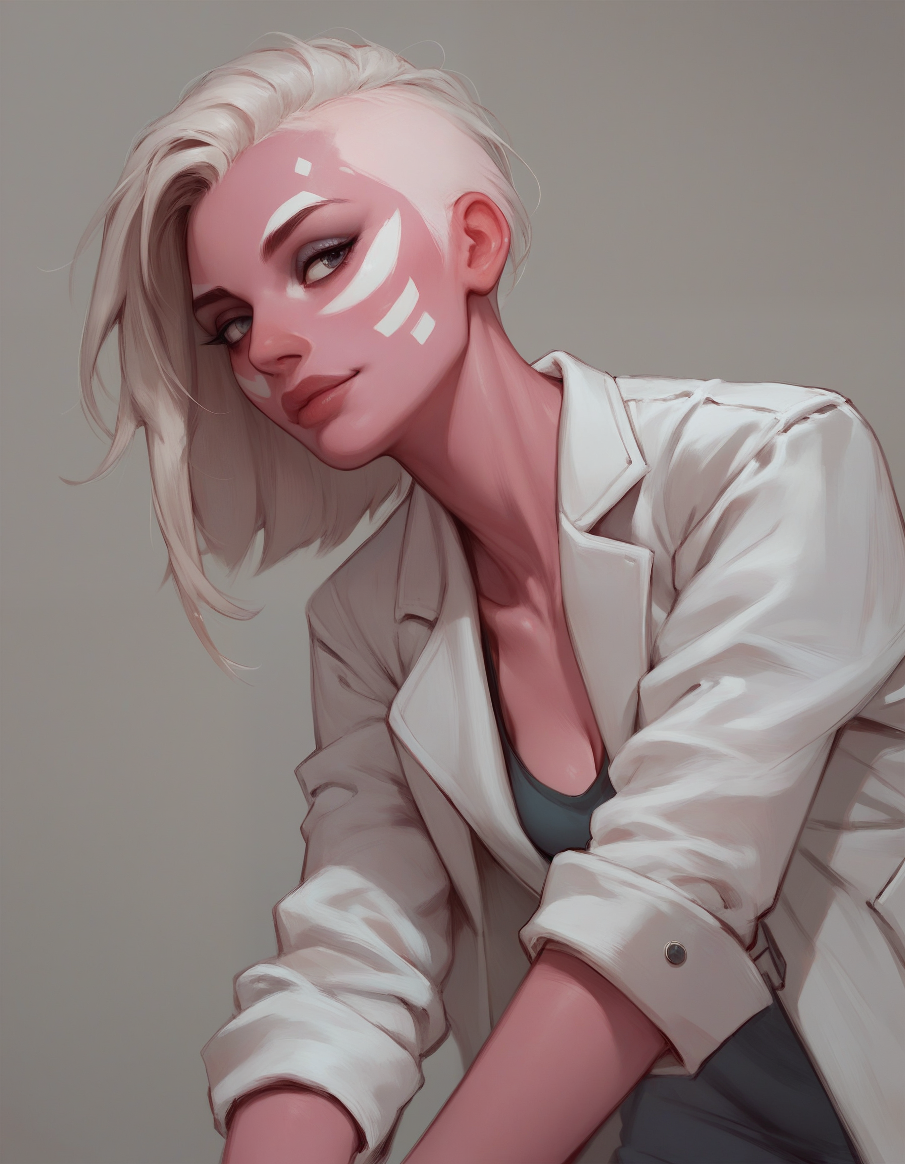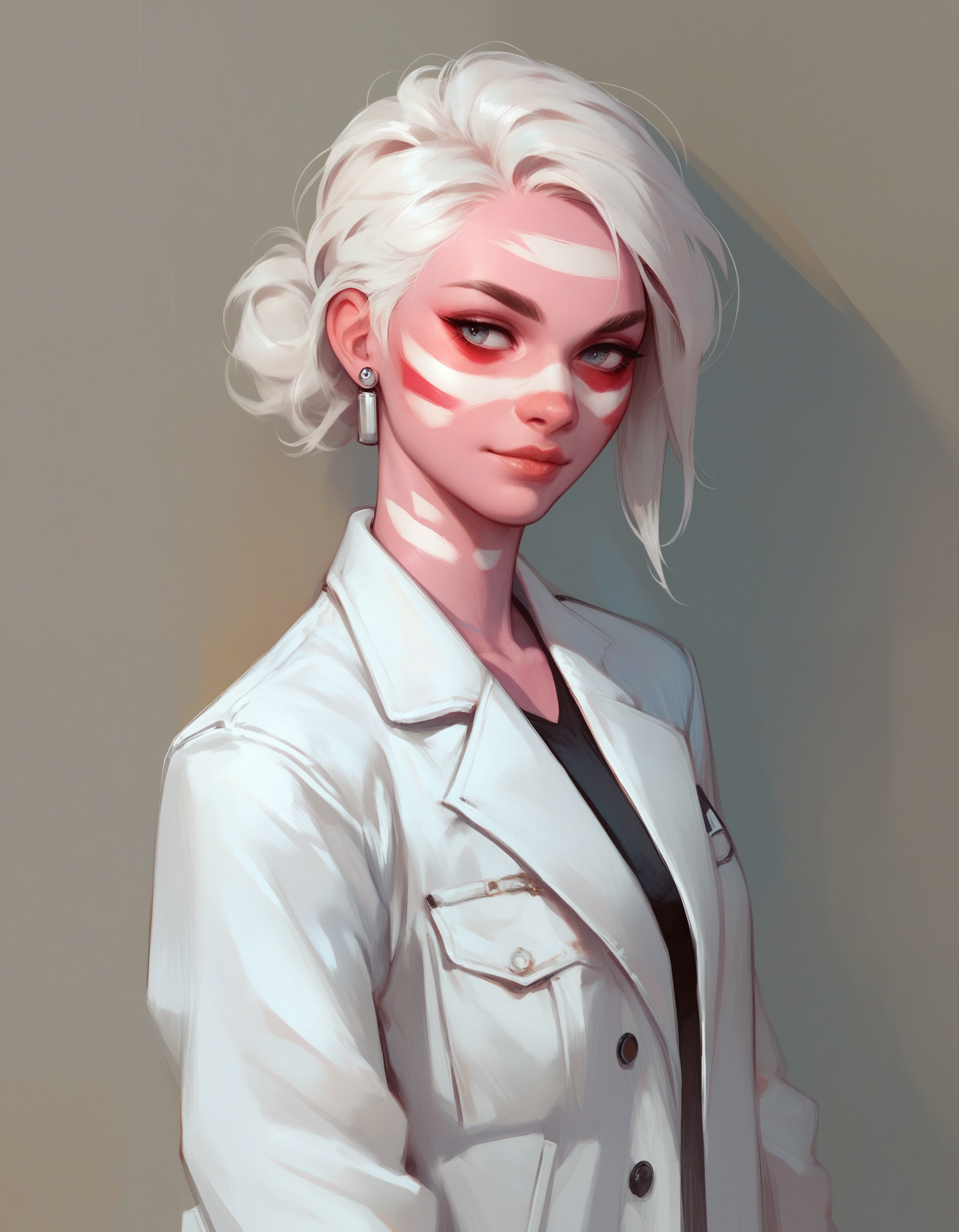 Стоило мне лишь приготовиться к рывку на верх, чтобы обратно забраться в шахту, как в лабораторию отворилась дверь, где в проёме остановилась женщина с татуировкой на лице и розовой кожей. Увидев меня, она мгновенно замерла и не посмела больше двигаться, ведь я обратил на неё своё внимание и усевшись уставился на эту красотку.
