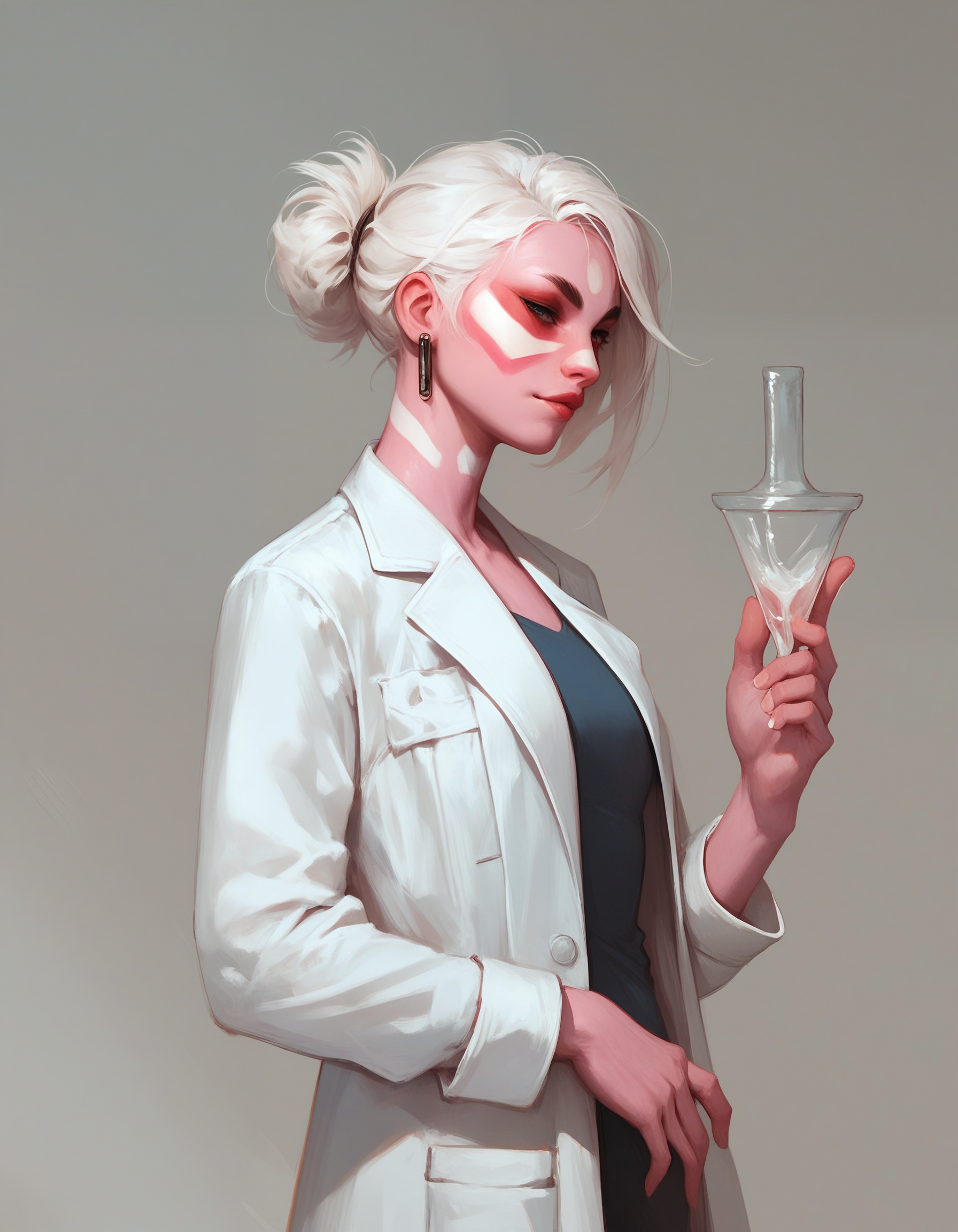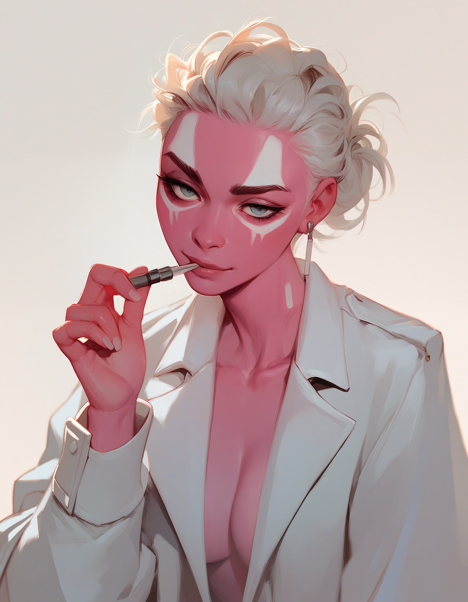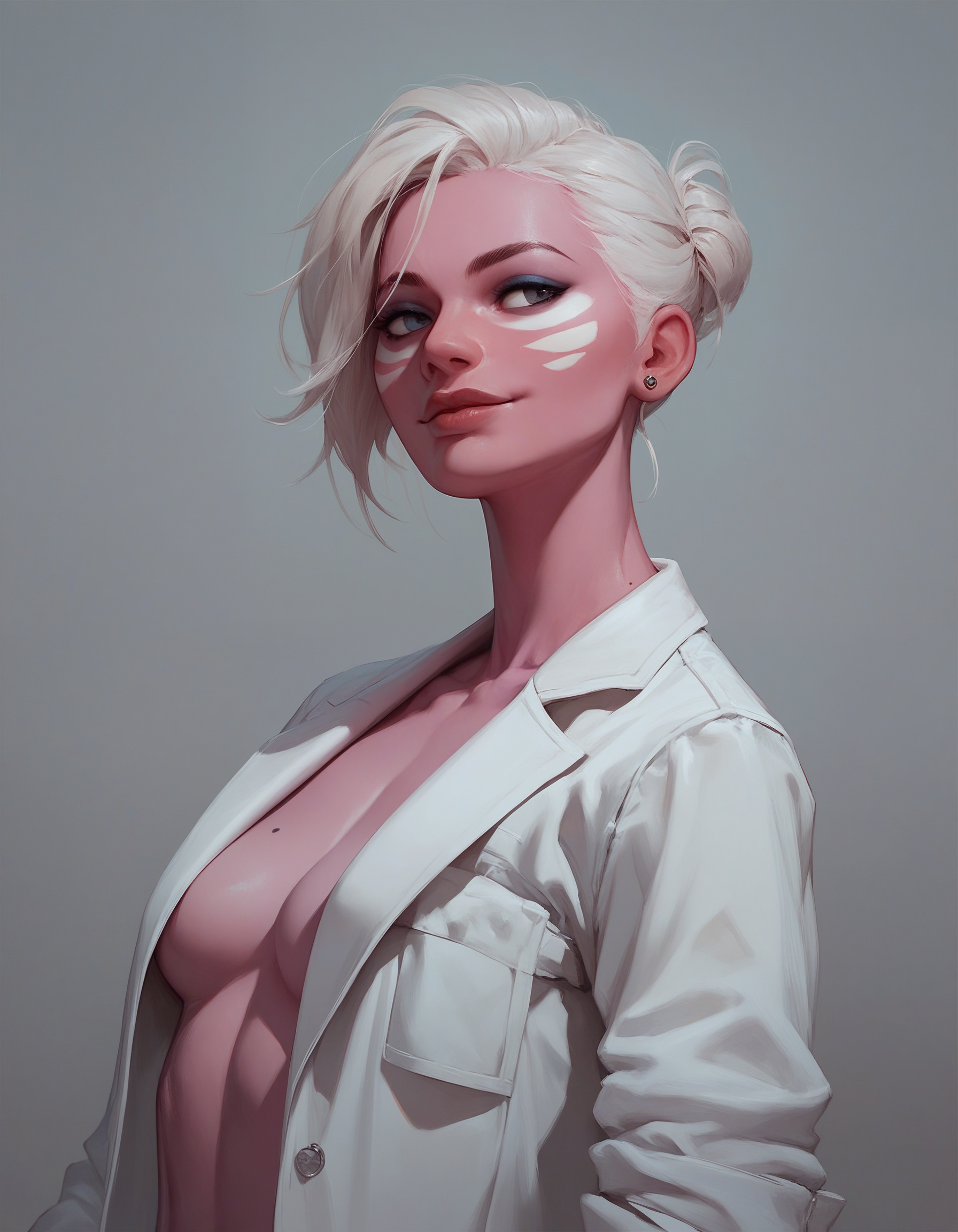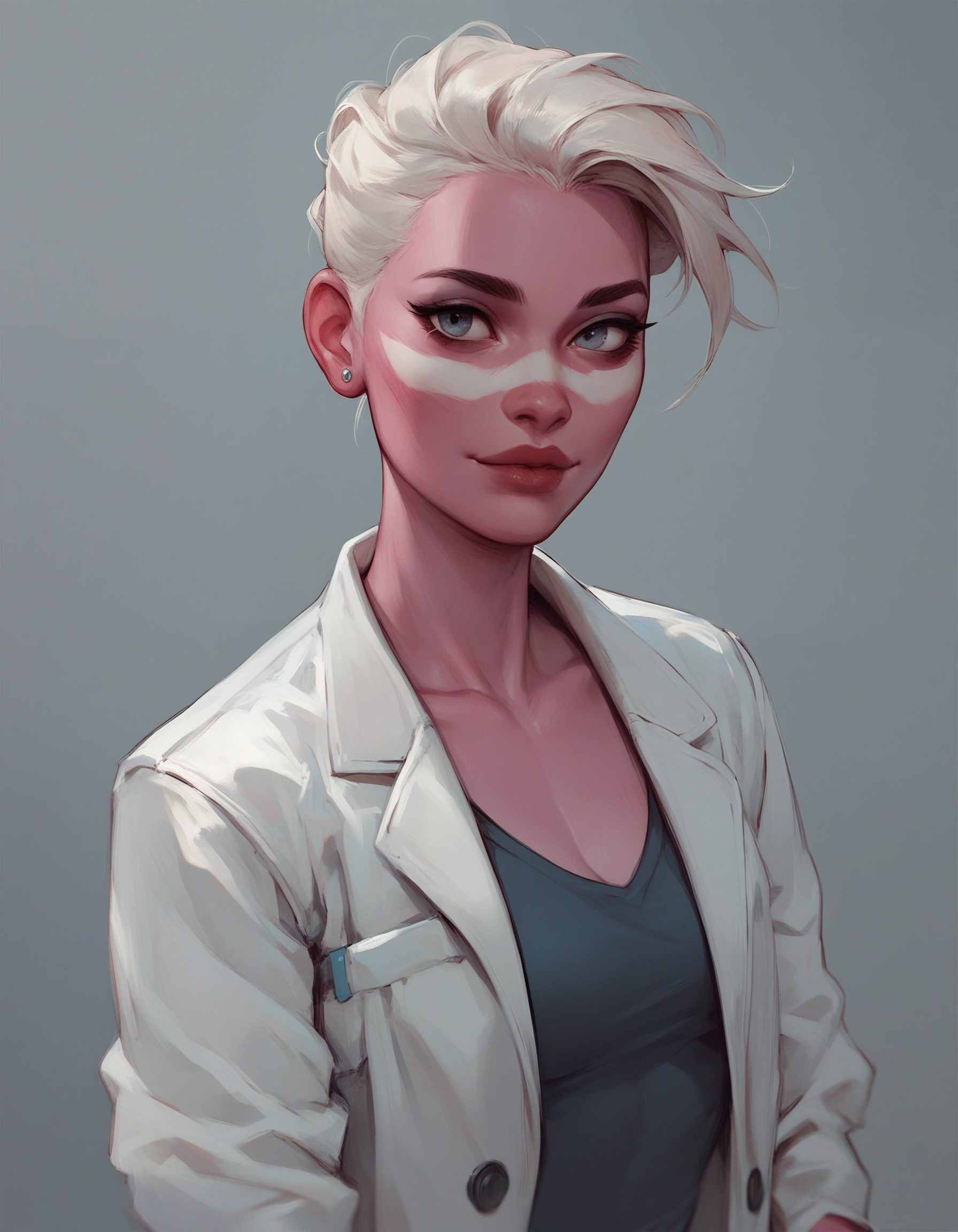Стоило мне лишь приготовиться к рывку на верх, чтобы обратно забраться в шахту, как в лабораторию отворилась дверь, где в проёме остановилась женщина с татуировкой на лице и розовой кожей. Увидев меня, она мгновенно замерла и не посмела больше двигаться, ведь я обратил на неё своё внимание и усевшись уставился на эту красотку.