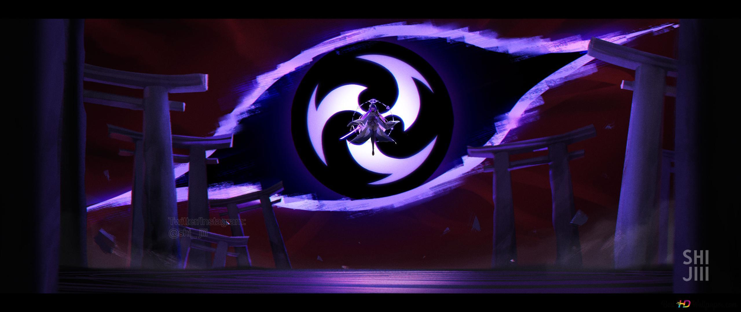 Вспыхнув плотной, фиолетовой аурой из молний, она мгновенно воспарила вверх, чтобы в тот же миг за её спиной возник колоссальный провал в пространстве в виде глаза и подобием трёх томое на поверхности тёмно-фиолетового зрачка!