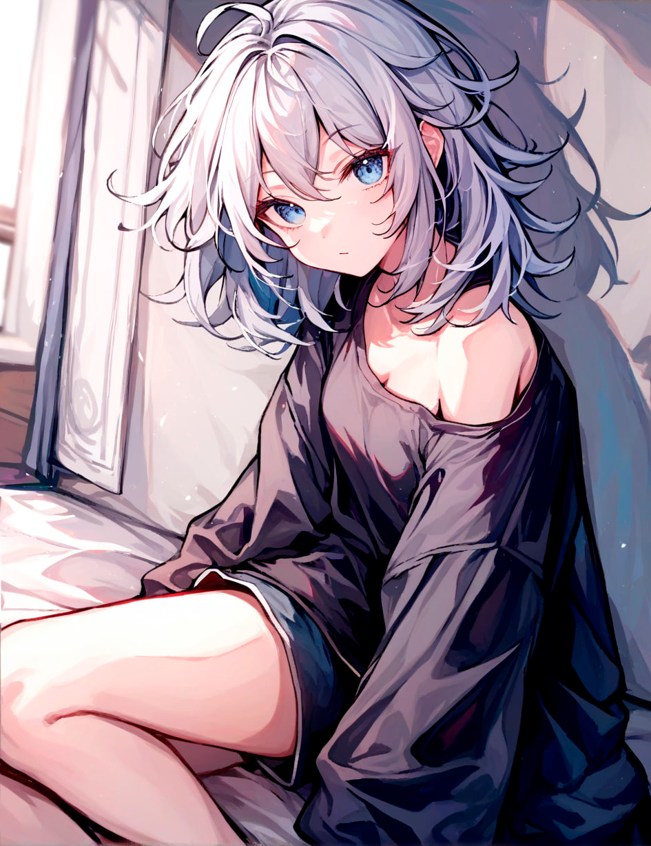 Спустя несколько секунд на кухню зашло белобрысое создание с всклокоченными после сна волосами, в шортах, то и дело сползающих вниз, и явно не подходящей по размеру майке.