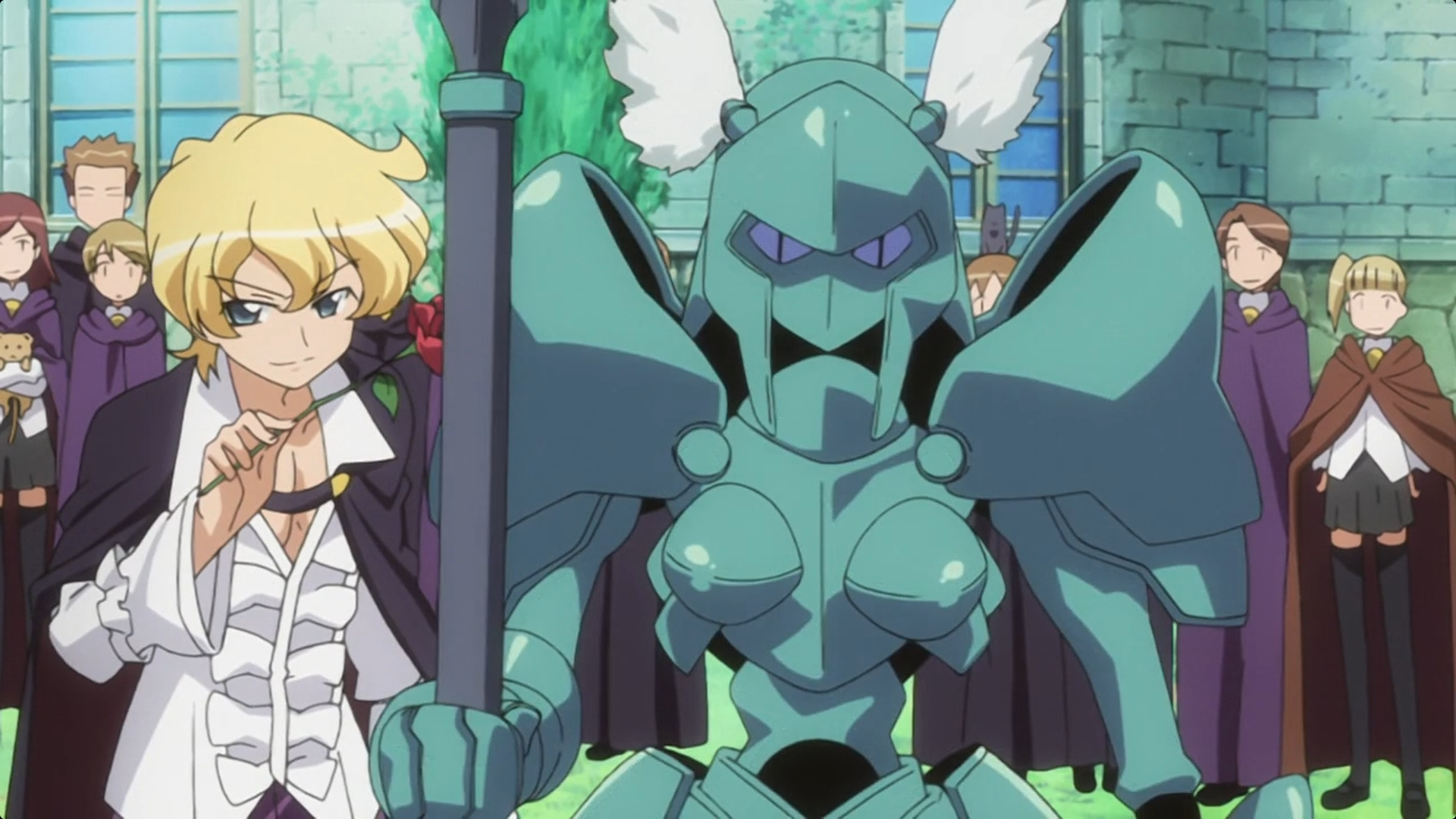 Два лепестка отделились от розы и на мгновение застыв в воздухе, внезапно обратились в двух полностью металлических големов. В виде женщин-воинов, в полный человеческий рост, облачённых в шлем и полные рыцарские доспехи, а также вооружённых короткими пиками.