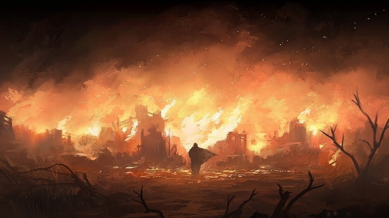 Огонь поднялся в несколько десятков метров в небо и продолжил в сторону севера. За ним последовал серовато-чёрный дым, что не давал увидеть ничего.