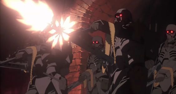 Появившаяся из-за баррикады фигура одномоментно перевернула ход сражения, как и двуручный многоствольный скорострельный пулемёт в её руках. Заряженный крупнокалиберными бронебойными патронами, это орудие войны прорубало в нестройных рядах нападавших целые просеки. Способные, за счёт Хаки, выдержать несколько выстрелов из нарезных ружей почти в упор, пираты оказались абсолютно беспомощны перед этим воплощением оружейной мысли и человеческого стремления уничтожать себе подобных. Даже одно попадание моментально срывало покров Воли Вооружения с жертвы, отталкивая её прочь, дезориентируя, оглушая, ломая кости и разрывая мышцы. Второй выстрел удавалось пережить единицам. Лишённые защиты тела прошивало насквозь, оставляя в них огромные, рванные дыры, из которых в обилии вытекали кровь и перемолотые в кашу внутренности. Зачастую на одной жертве такая пуля не останавливалась, продолжая свой смертельный полёт и забирая по пути ещё парочку душ, прежде чем окончательно потерять весь свой запал и рухнуть на камни мостовой искорёженным куском металла, быстро утопая в лужах крови и нечистот.