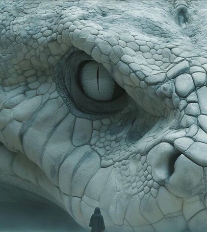 Тия осмотрелась. Чёрная почва под ногами была тверда и «ячеиста», словно глиняная пустыня под вечным палящим солнцем. «Чешуя», — тут же догадалась она, сопоставив огромную змеиную голову с необычным материалом. Вокруг — лёгкий туман. Пусть и ненавязчиво, но он, отметила для себя девушка, скрывал вообще всё окружение, и даже змеиную башку, и ту было не разглядеть. Да и была ли она вообще?