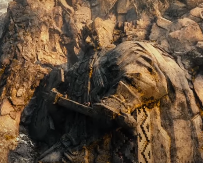 И вот Торин, держащий в одной руке ключ, а в другой карту, уже стоит и смотрит на исполинский барельеф вытесанный неизвестными мастерами прямо в горе.