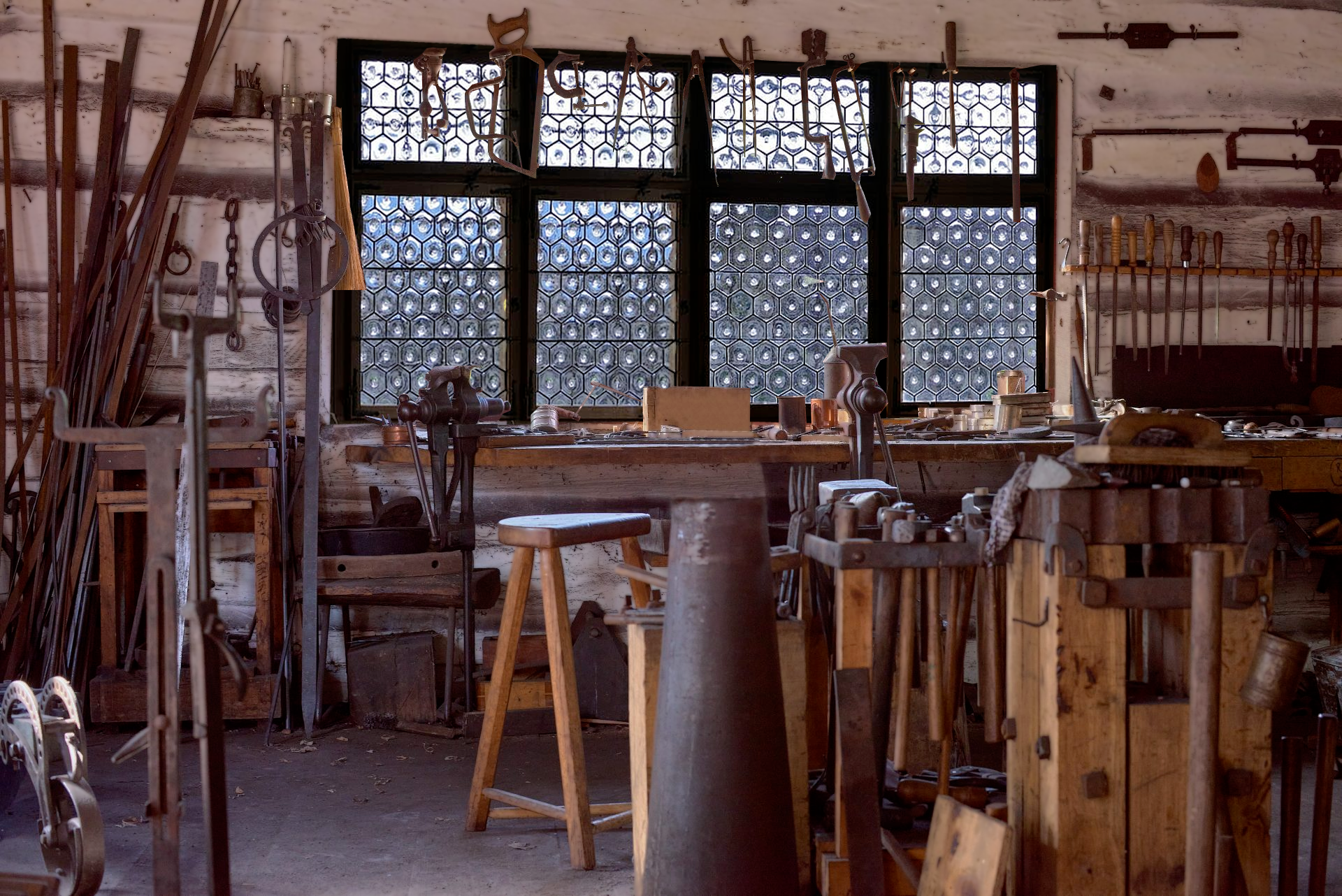 Остальные столы были менее примечательны. Один отводился, видимо, для каких-то опытов, он был покрыт железным листом, местами чуть покорёженным, но он был пуст и сложно было сказать, как его используют. В светлом углу, ближе к окнам, стояла стойка в разного рода холодным оружием. Еще одна из стен представляла собой столярно-слесарную мастерскую. И книги, книги — они были везде.