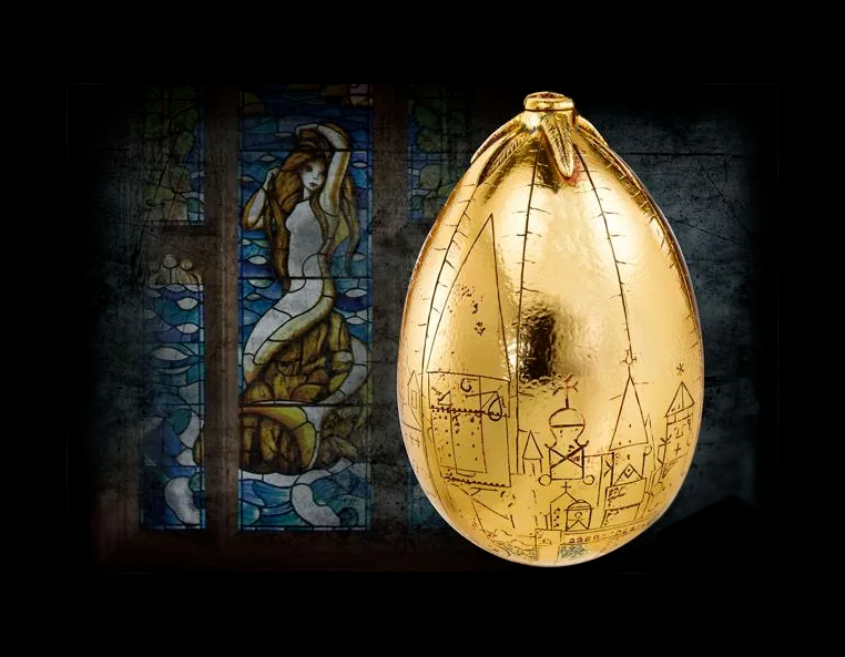 Итак, они нырнули под воду и послушали сообщение яйца Гарри. Потом проделали то же самое с яйцом Виктора — оказалось, что это то же самое послание.