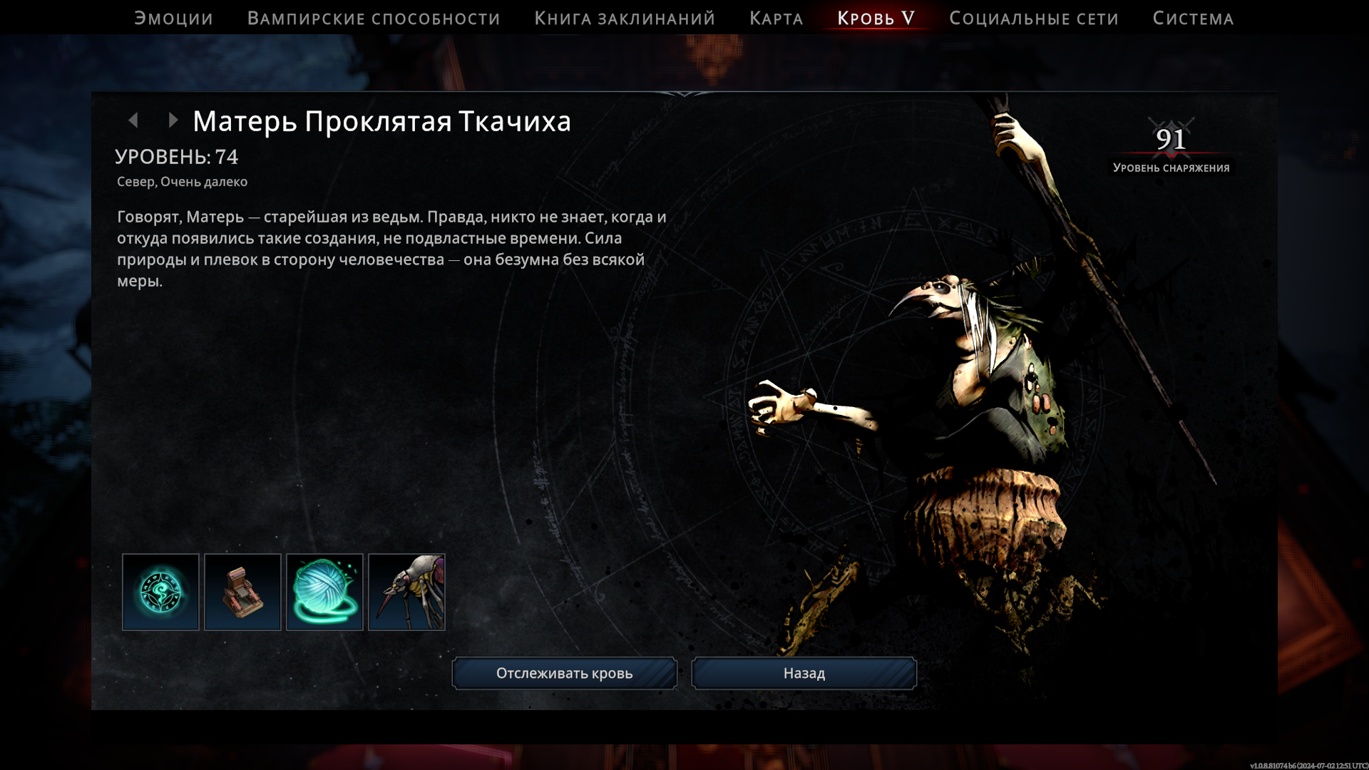 (Матерь Проклятая Ткачиха, неприятный, но не слишком сложный босс, хоть и из энд-гейма)