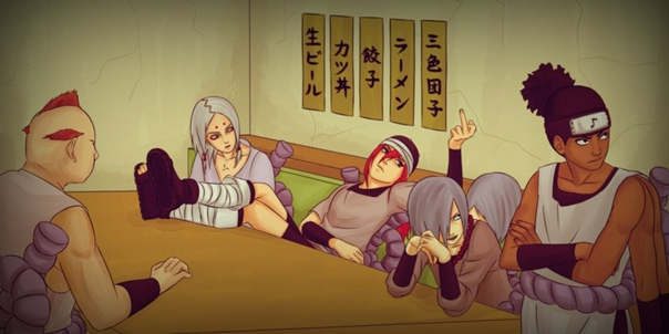 — Да. Они выглядят подозрительно. — прозвучал голос прозрачного силуэта хрустящий печеньями. — Значит по твоим словам Орочимару основал скрытую деревню Звука, и это его прихвостни.