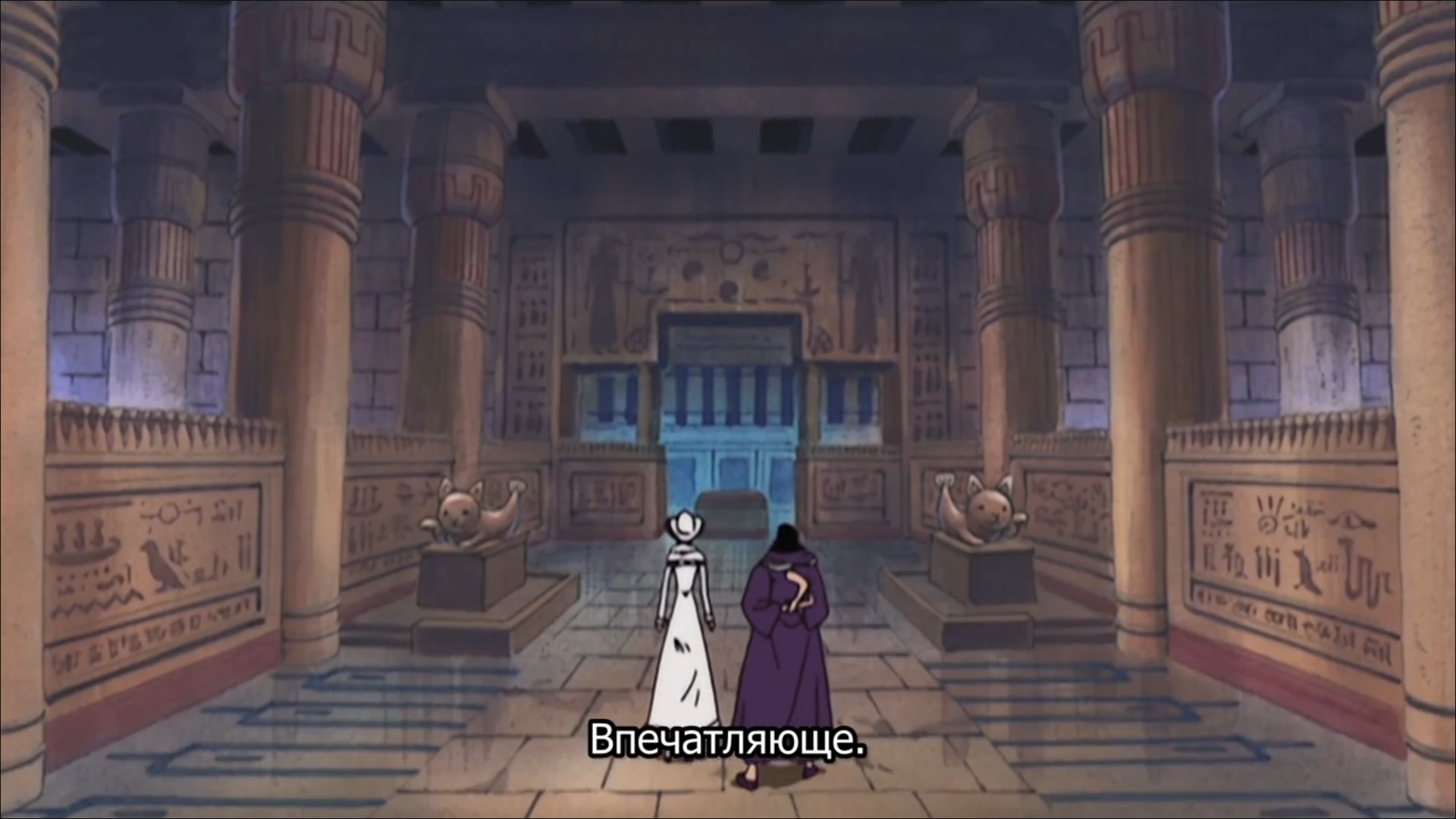 Крокодайл одной рукой открыв дверь и вызвав скрипящий звук, позволил увидеть его… В центре помещения стоял Понеглиф! Настоящий!