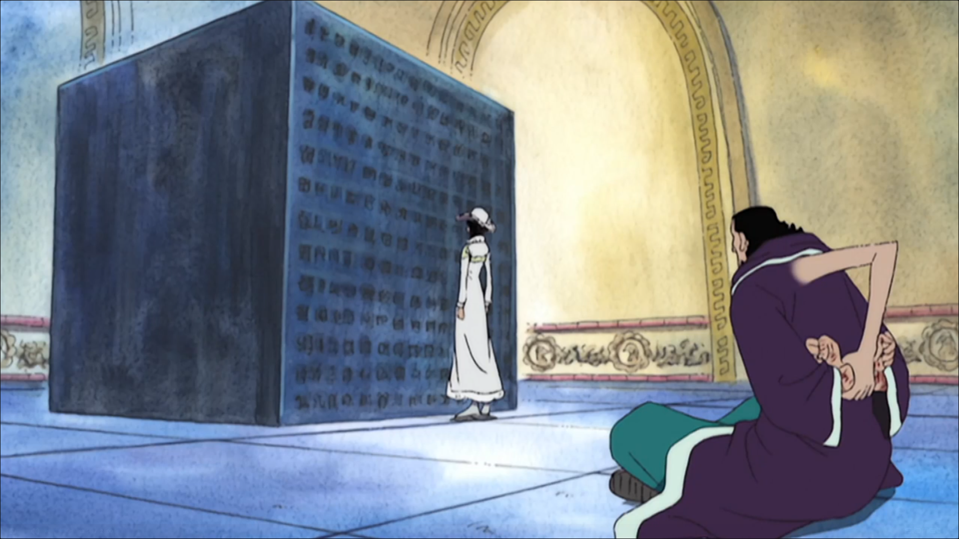 Тем временем Крокодайл, который просто пытался вспомнить имя отца Робин и нечаянно сказал его через копию Ольвии… А Ольвию он действительно давно видел. Всё-таки арку с флешбеком Робин смотрел он давненько…