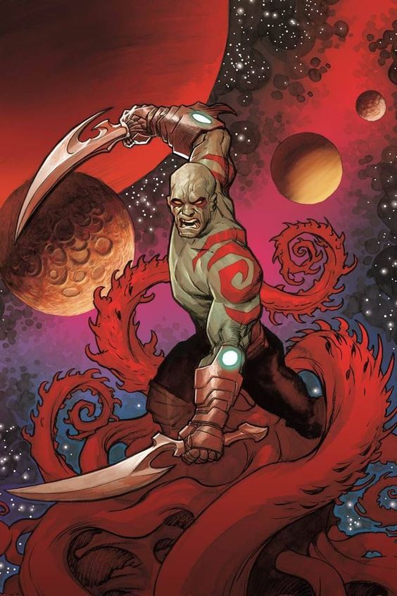 Питер с трудом поднялся на ноги, чувствуя боль во всём теле. Где-то вдалеке он заметил, как Дракс сражается с целой группой врагов, размахивая своими кинжалами с привычной для него яростью, а Гамора ловко уклоняется от атак, нанося точные удары своим мечом.