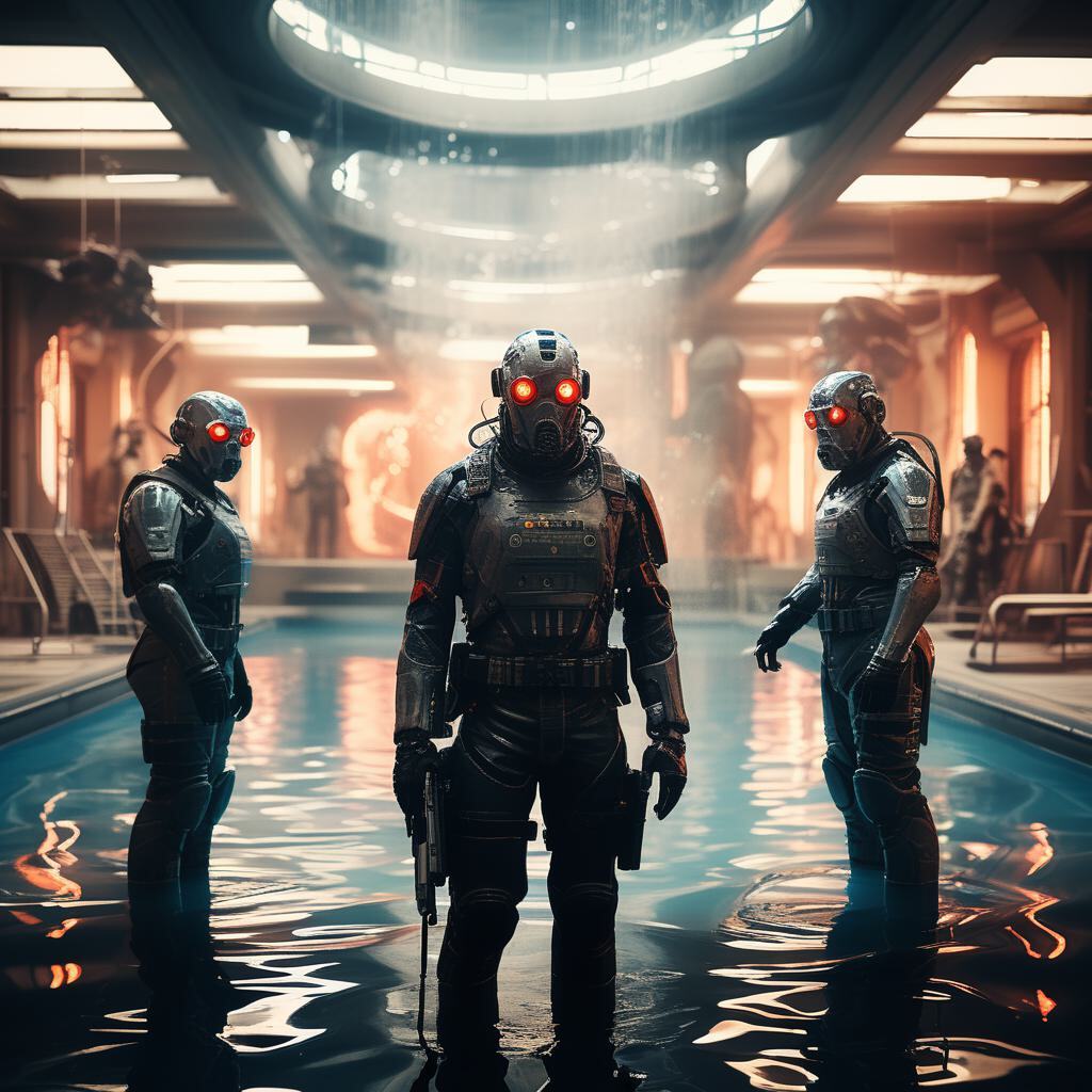 Металлический стук стальных ног гулко раздавался по полу. Вскоре в свете фонарей группа мужчин разглядела человекоподобного андроида в униформе техника, который медленно шёл в их сторону.