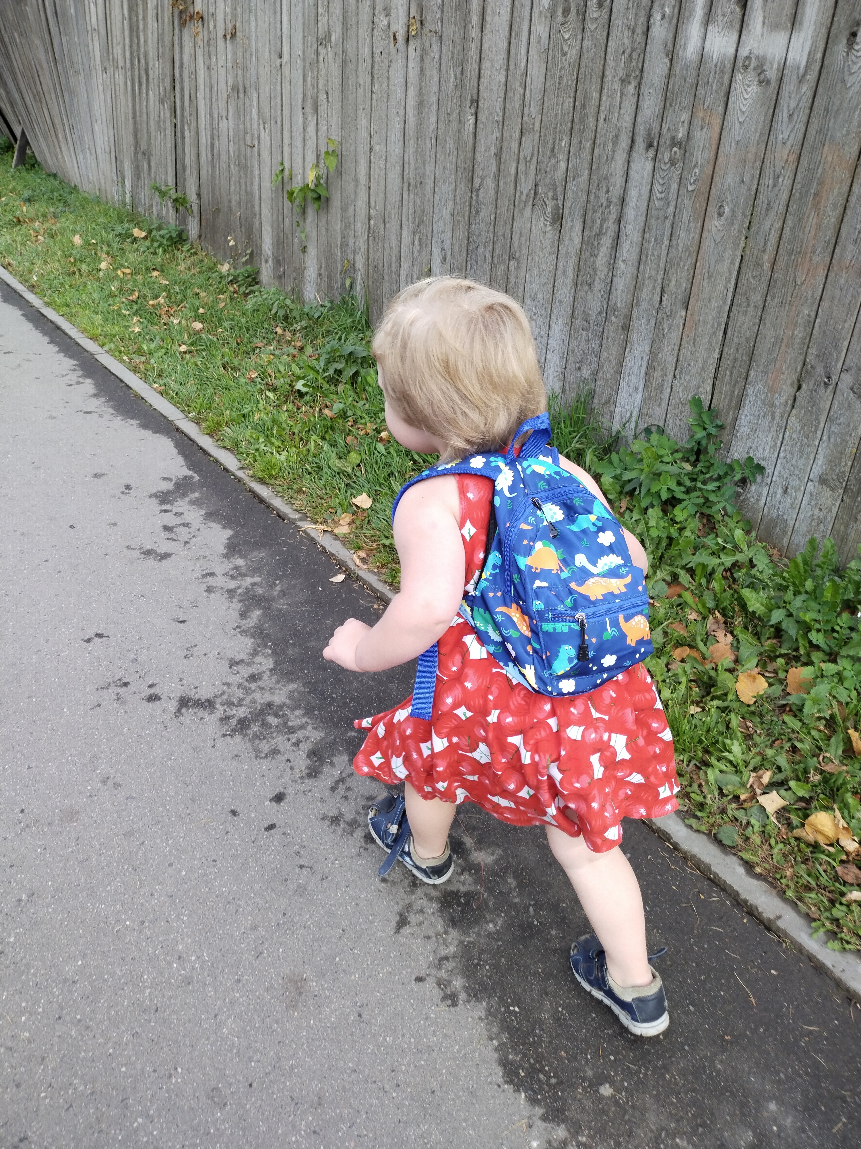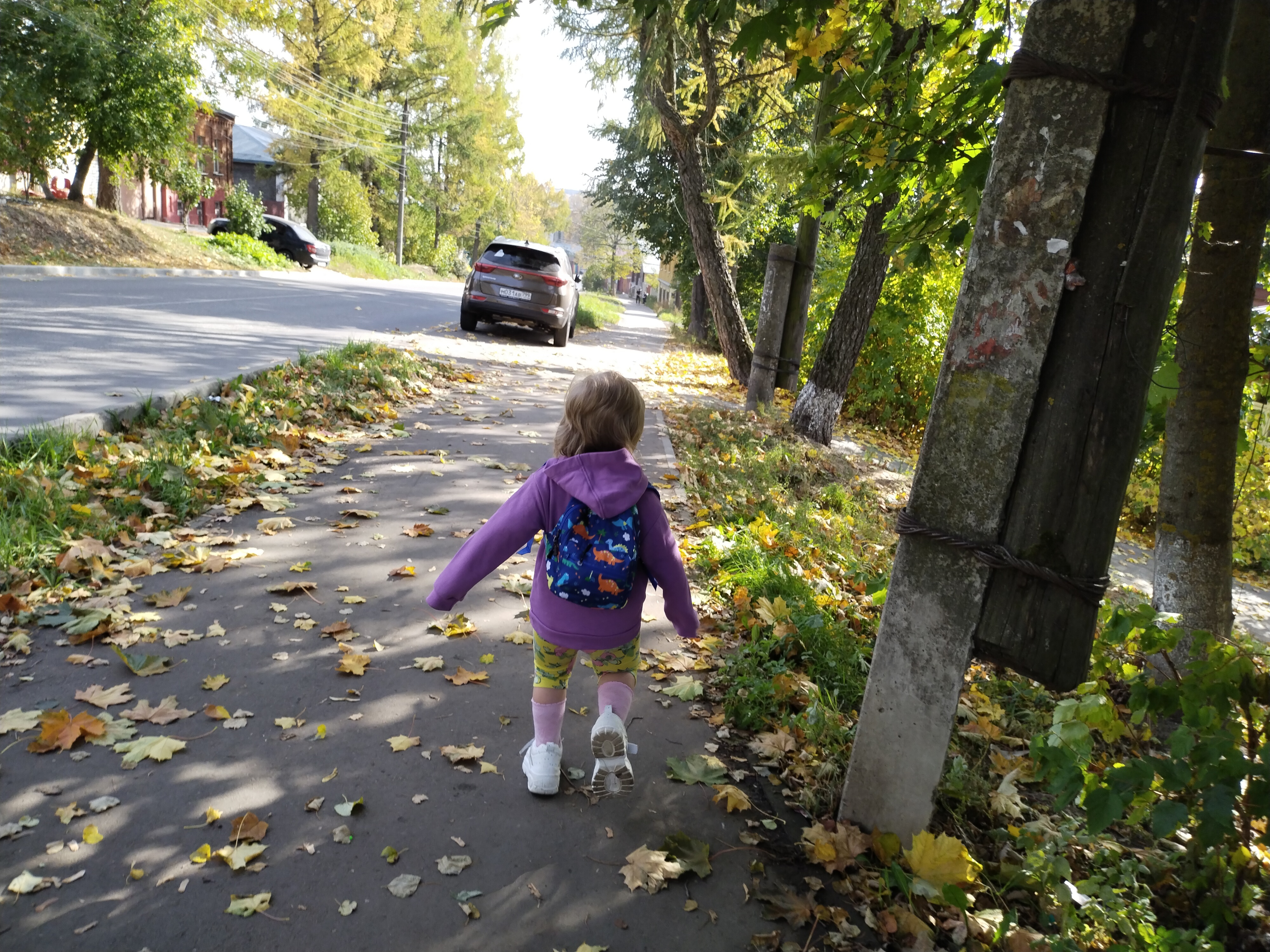 2. А вот довольная Вероничка в сентябре спешит на развивашки (а мама её снимает) — тоже не без вашей помощи 😁 Лучшее время, чтобы писать, когда мама и дочка заняты))