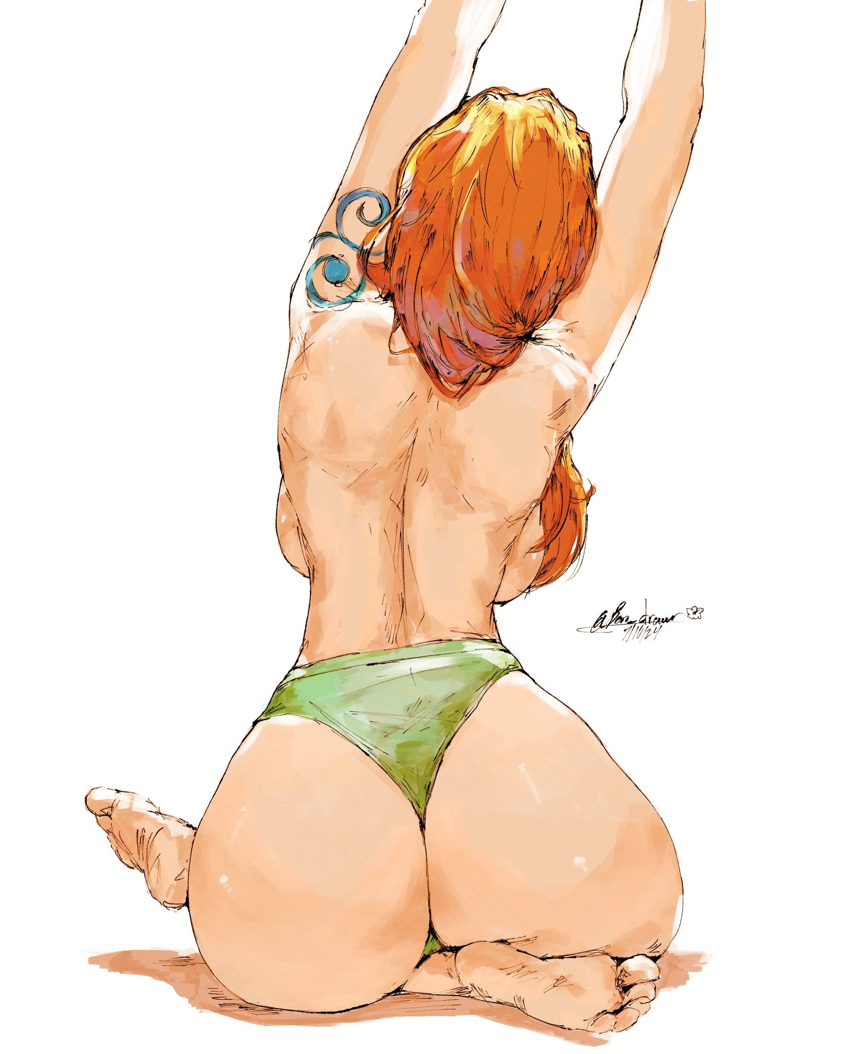 Закрыв за собой дверь я посомтрел на Нами, девушка лёжа обнимала подушку показывая свою голенькую попку.