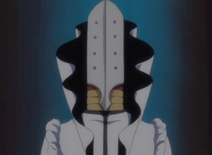 Все в зале недоуменно переглянулись, так как Айзен неожиданно замолчал. Вдруг послышался звук за дверью и ту, в ту же секунду открыло двое одинаковых пустых, странного вида, после чего в зал вошло существо, внешне сильно напоминающее синигами, как стилем одежды, так и отсутствием признаков пустого. За его же спиной последовали двое пустых, одна из которых была арранкаром, а вторая Васто Лордом.