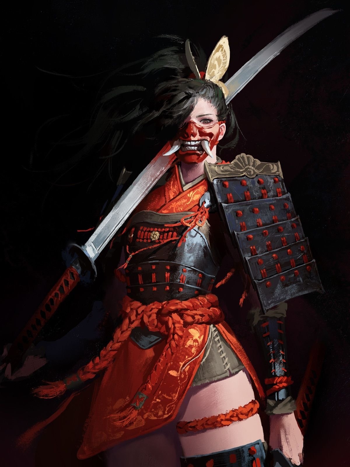 Девушка поднялась, почтительно смотря на меня своими карими глазами, которые сверкали жизнью и счастьем. А спустя несколько секунд из пола начали быстро подниматься её новые воины. Полностью белые гуманоидные фигуры, которые были облачены в маску злобного они, с двумя торчащими вверх рогами. Тело было закрыто жилеткой, а вокруг шеи широкий шарф, плечи, предплечья и кисти, были закрыты клепанной броней, напоминающей сетку. Пояс был выполнен из обычной ткани, на которой висели две катаны. Ноги были закрыты штанами, которые поверх обмотаны бинтами, и лишь на голени были щитки как на плечах. На ступнях же были деревянные сандали.