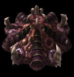 Вообще стоит упомянуть, что строение выглядит как некая центральная башня, от которой вниз тянется все остальное, только всё это выполненной сплошным потоком и из органики. К этой самой высокой башне и подходят концы труб, обрамляя её. Между же трубами находится разнообразная плоть, кусками, подобием органов, жгутами и другими вариациями.
