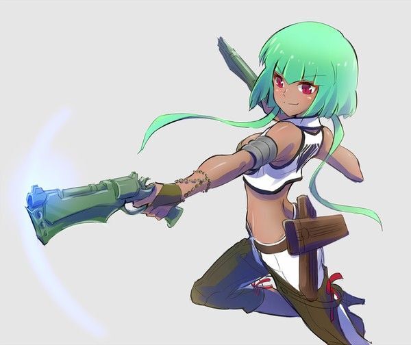 Пирра показала на свой рюкзак, точнее сказать разгрузку, на которую помимо рюкзака цепляется несколько дополнительных видов оружия.