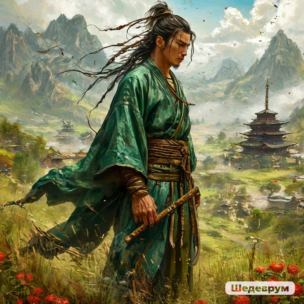 — Все пришли! — громко воскликнул Коиши. Я мгновенно переключился на доппеля и тот показал мне, что компания находится на небольшой возвышенности, а оттуда доносились чти-то выкрики, а также странные звуки, сопровождаемые разноцветными лучами, летящими в разные стороны. Компания подошла к высокому мужчине стоящим к ним спиной. Мужчина стоял, сложив руке за спиной на поясе. Длинная угольно-черная коса свисала до лопаток и было видно, что за ней тщательно ухаживают и всячески холят. Одет он был в ядовито-зеленое кимоно старинного кроя. Явно не дешевая. Хотя, мне ли говорить о стоимости чего-либо?!