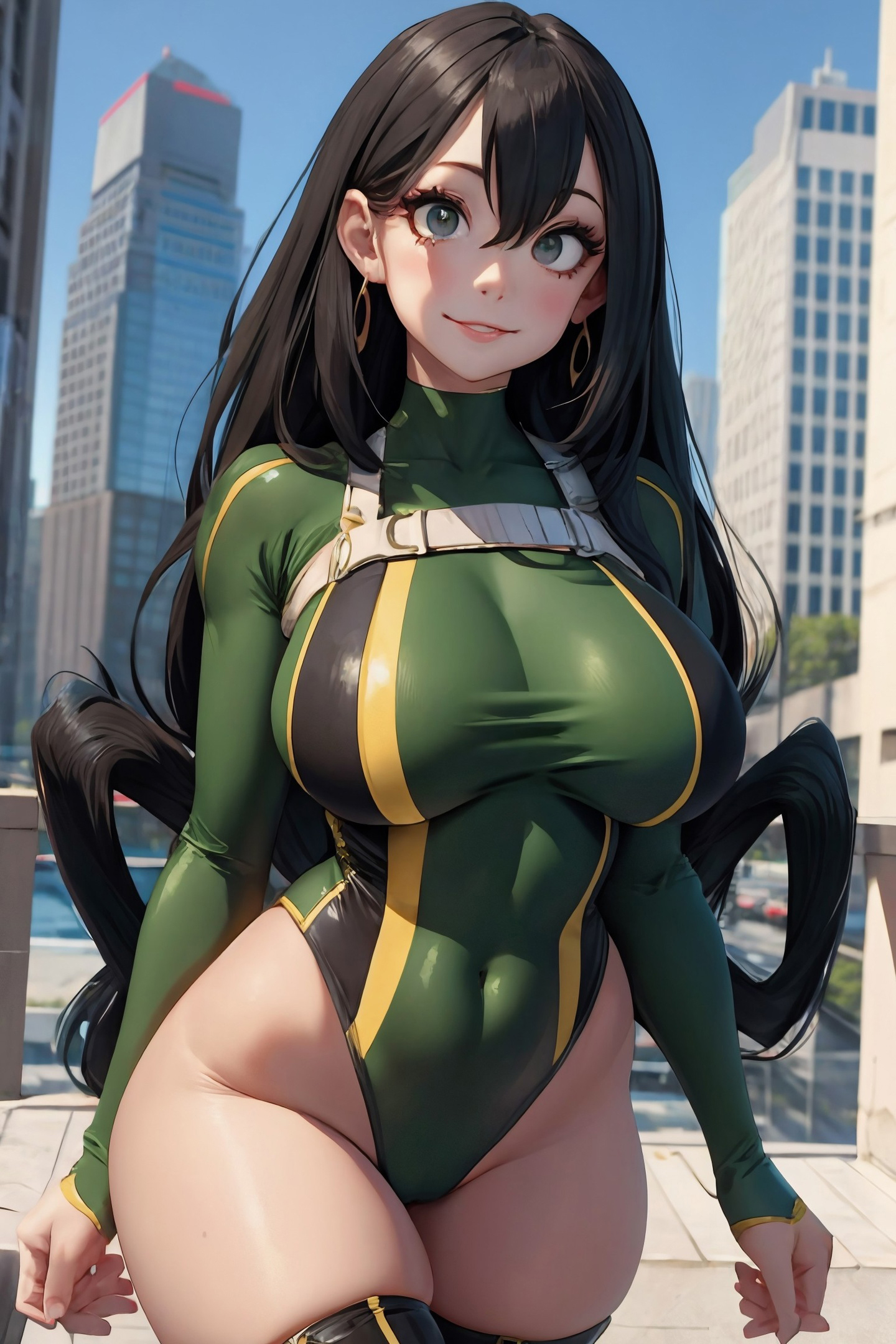 Мируко ещё одну свою фотку прислала, зазывая в гости… На этот раз в геройском костюме. Ракурсом снизу.