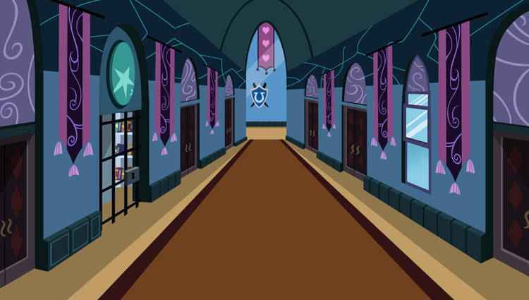 Бежевый мраморный пол, накрытый коричневыми коврами, с тёмными кончиками, окружённые тёмно-синими стенами, с тёмными плитками у полов. На стенах, между кабинетов, либо колон, висели баннеры с различными узорами, а над самими кабинетами были фиолетовые полуовалы, с теми же узорами. Может то был язык бухгалтеров, но, как всем известно, эти пони ненавидят всю расу пони. Никто так не пылает раздражением, справедливой ненавистью и гневом по отношению к пони как другие пони, решающие их вопросы.